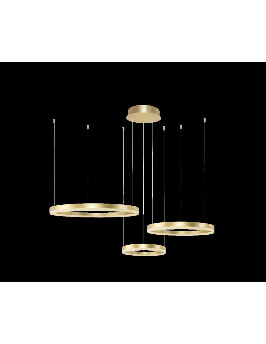 Oferujemy nowoczesną dekoracyjną lampę HALO, która stanowi doskonały wybór dla osób pragnących wprowadzić wyjątkowy klimat do swojego wnętrza. Ta elegancka lampa, składająca się z trzech złotych ringów, łączy w sobie minimalistyczny design z nowoczesną funkcjonalnością, co czyni ją idealnym elementem do każdego pomieszczenia, od jadalni po salon.