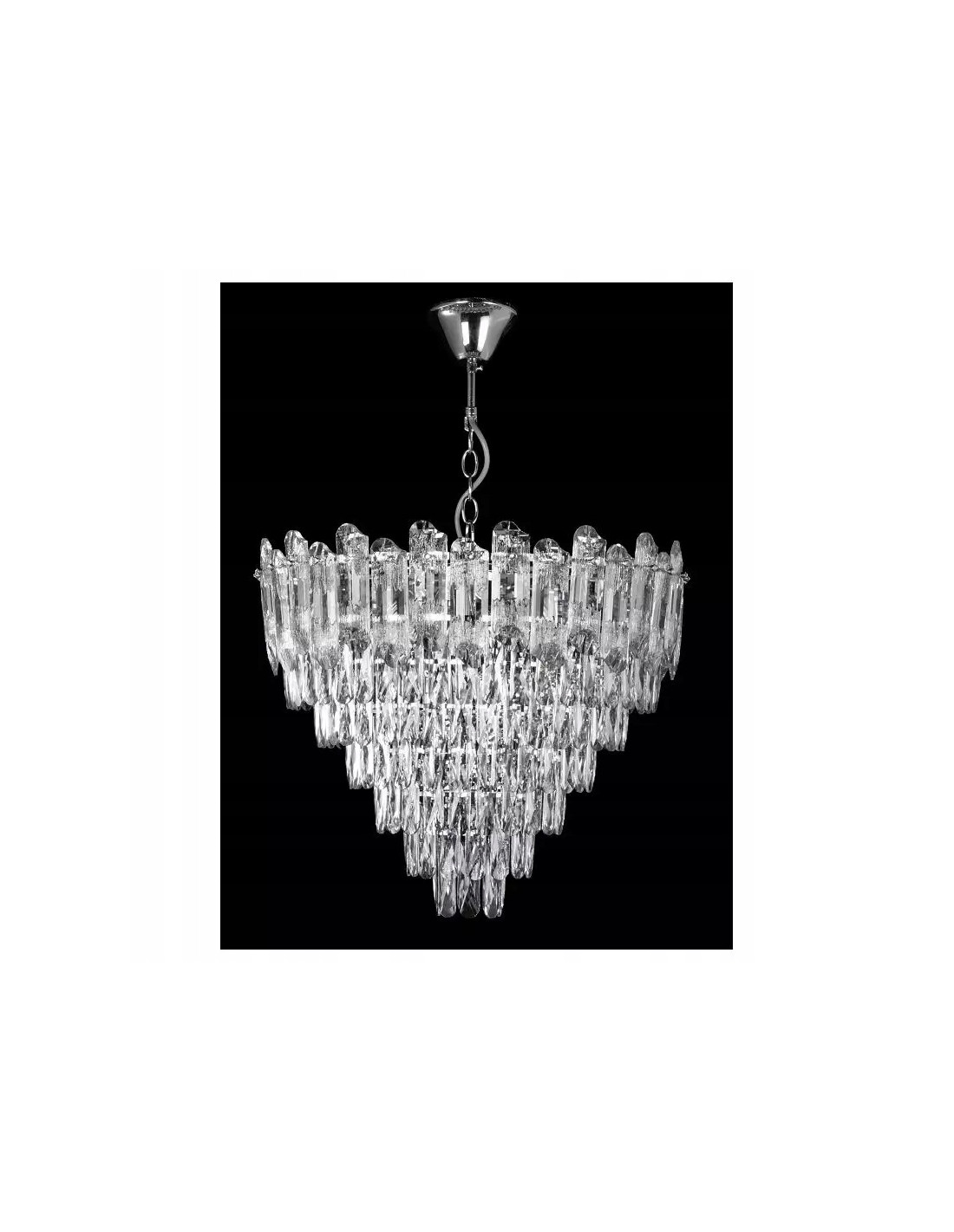 Lampa wykonana z wysokiej jakości metalu i kryształu zachwyca doskonałym wykonaniem oraz precyzyjnie oszlifowanymi elementami, które pięknie załamują światło. Chromowany lub ciemnozłoty wykończenie dodaje nowoczesności, czyniąc ją eleganckim dodatkiem do sypialni, salonu czy jadalni. Jej niebanalny wygląd sprawia, że możesz wykorzystać ją zarówno w domowej przestrzeni, jak i w bardziej formalnych miejscach, takich jak hotele czy restauracje.