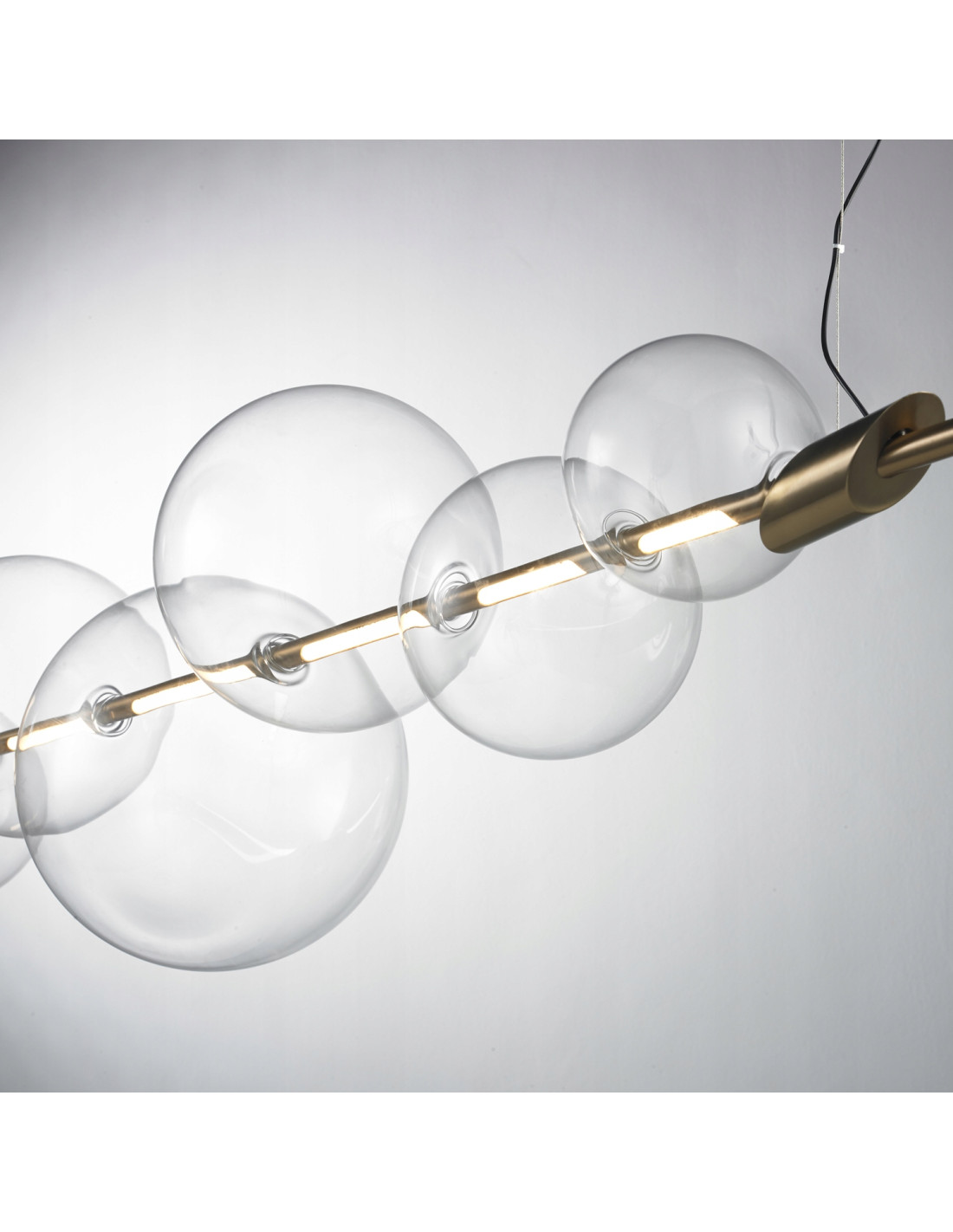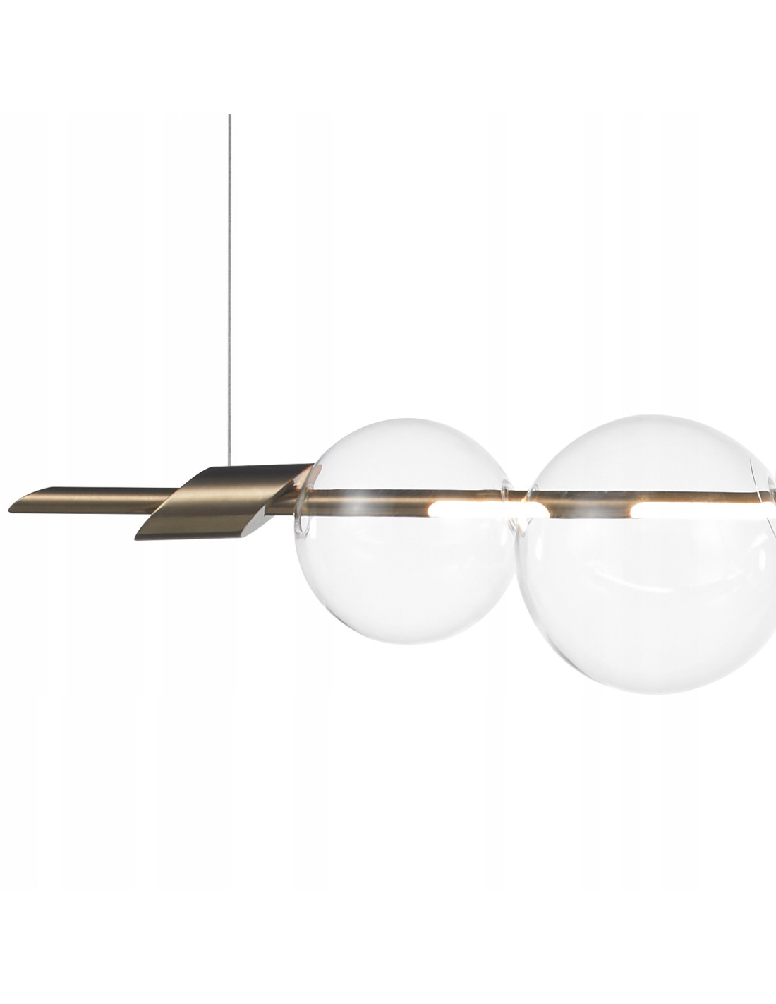 Długa złota lampa LED z bańkowymi kloszami AMORE to niezwykle elegancki element oświetleniowy, który doskonale wpisuje się w nowoczesne i klasyczne aranżacje wnętrz. Jej imponujący design przyciąga wzrok i dodaje wyjątkowego charakteru każdemu pomieszczeniu, w którym zostanie umieszczona.