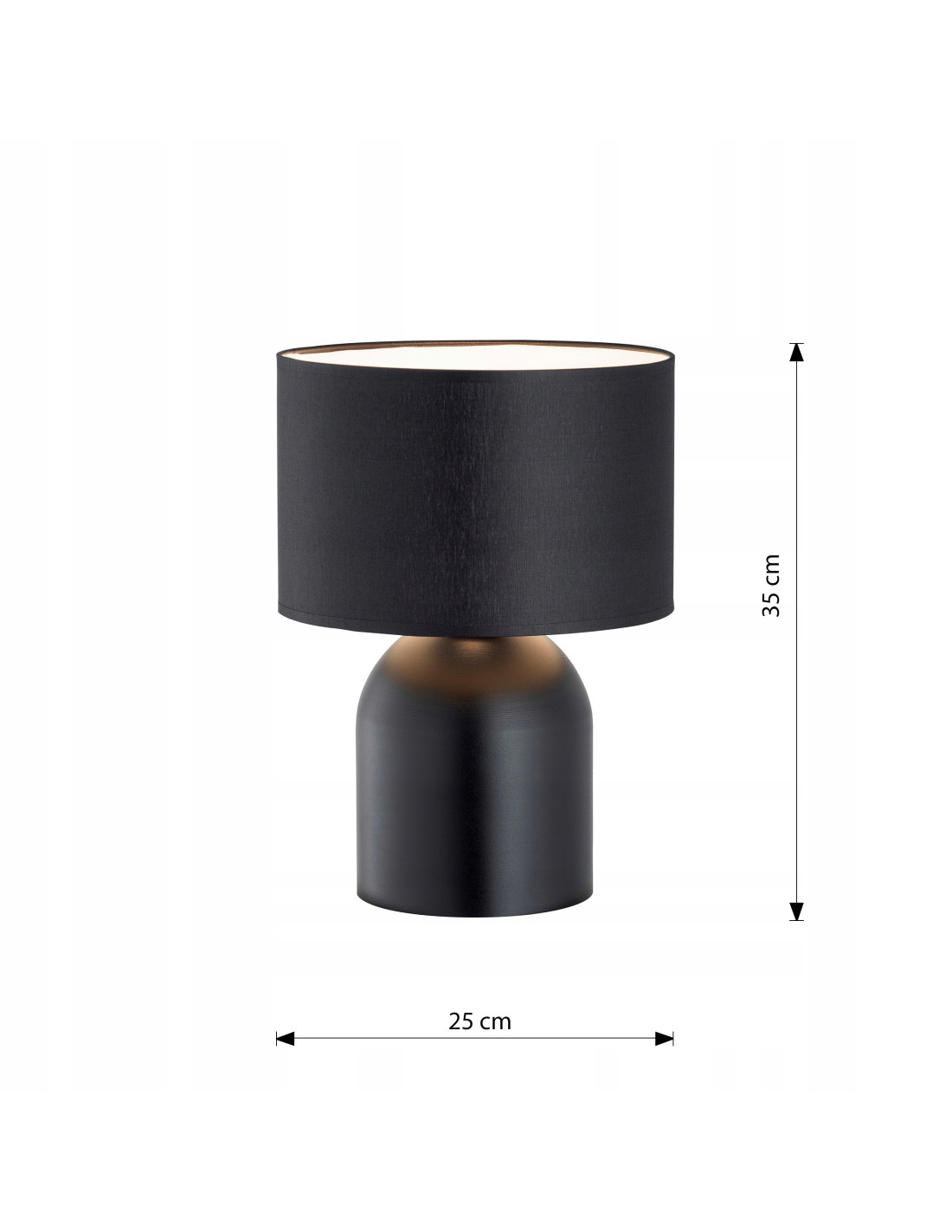Wymiary lampy wynoszą: wysokość 35 cm, głębokość 15 cm oraz szerokość 25 cm, co sprawia, że świetnie sprawdzi się na nocnych stolikach oraz w mniejszych przestrzeniach. Dzięki jej uniwersalnym kolorom - czarnemu abażurowi z żółtym akcentem, lampa wkomponuje się w różnorodne style wnętrzarskie, od nowoczesnego po klasyczny.