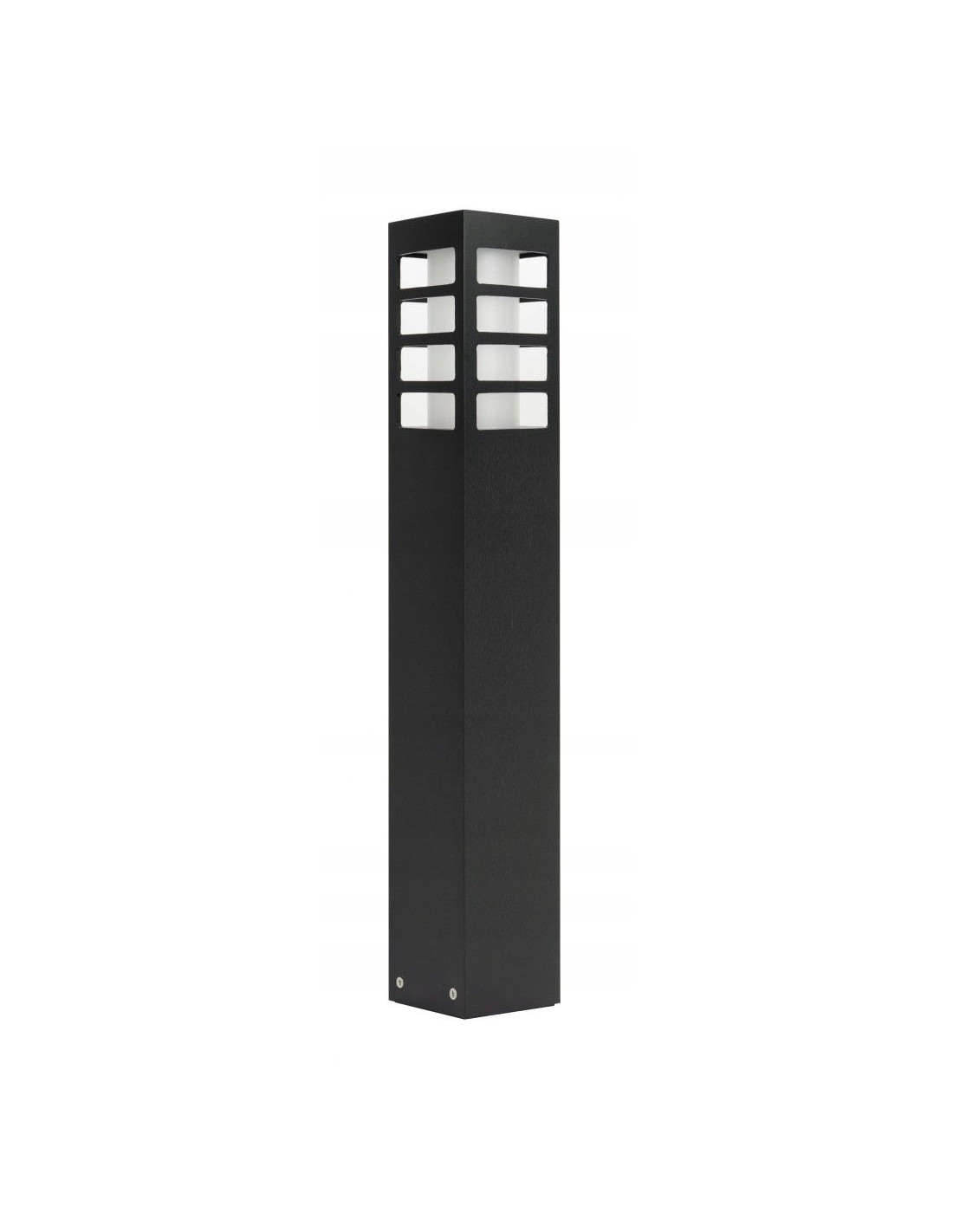 Pojedyncza lampa o wysokości 50 cm i szerokości zaledwie 8 cm jest funkcjonalna i minimalna. Jej kwadratowy kształt, wykonany z lakierowanego aluminium w kolorze czarnym, przyciąga wzrok i odpowiada na aktualne trendy w projektowaniu przestrzeni na świeżym powietrzu. Dzięki zastosowaniu polimetakrylanu satynowanego, klosz zapewnia nie tylko estetyczny efekt, ale również najlepsze parametry użytkowe.