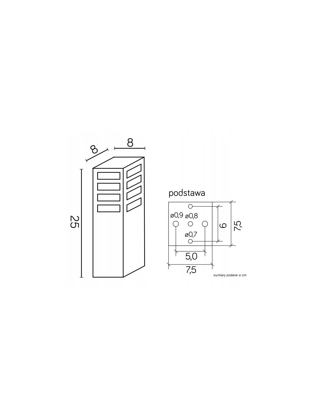 Lampa RADO III 3 BL ma wysokość 25 cm oraz kwadratowy kształt oprawy, co sprawia, że doskonale wpisuje się w nowoczesne aranżacje. Wykonana z aluminium i polimetakrylanu satynowanego, łączy w sobie elegancję oraz trwałość. Jej czarny kolor stanowi stylowe uzupełnienie każdego ogrodu, nie tylko oferując funkcjonalne oświetlenie, ale również podkreślając estetykę otoczenia.