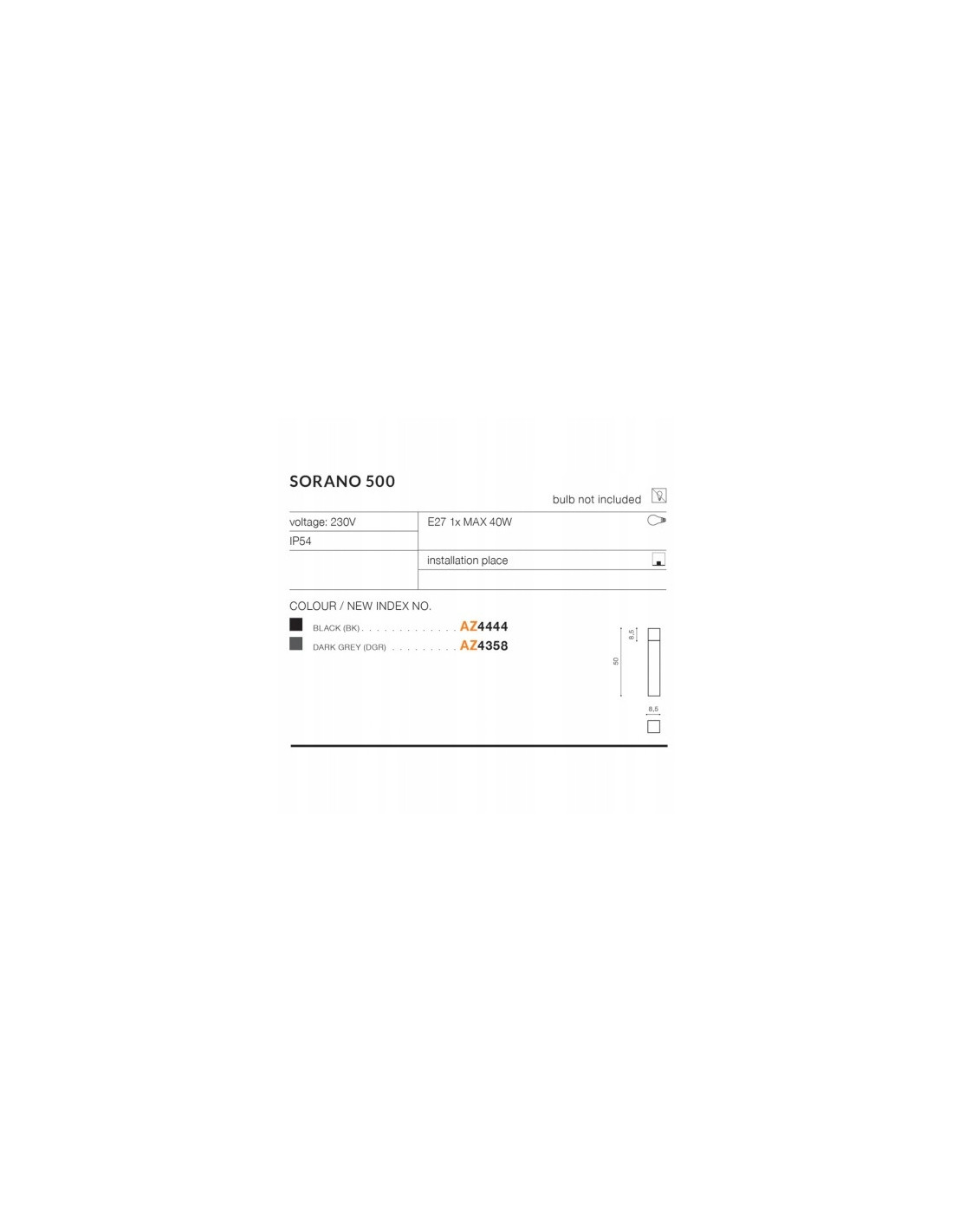 Lampa na słupku SORANO 500 charakteryzuje się wysoką szczelnością na poziomie IP54, co oznacza, że jest odporna na wilgoć oraz zachlapania. Dzięki temu możesz bez obaw umieścić ją w otwartych przestrzeniach, gdzie narażona jest na działanie niekorzystnych warunków atmosferycznych.