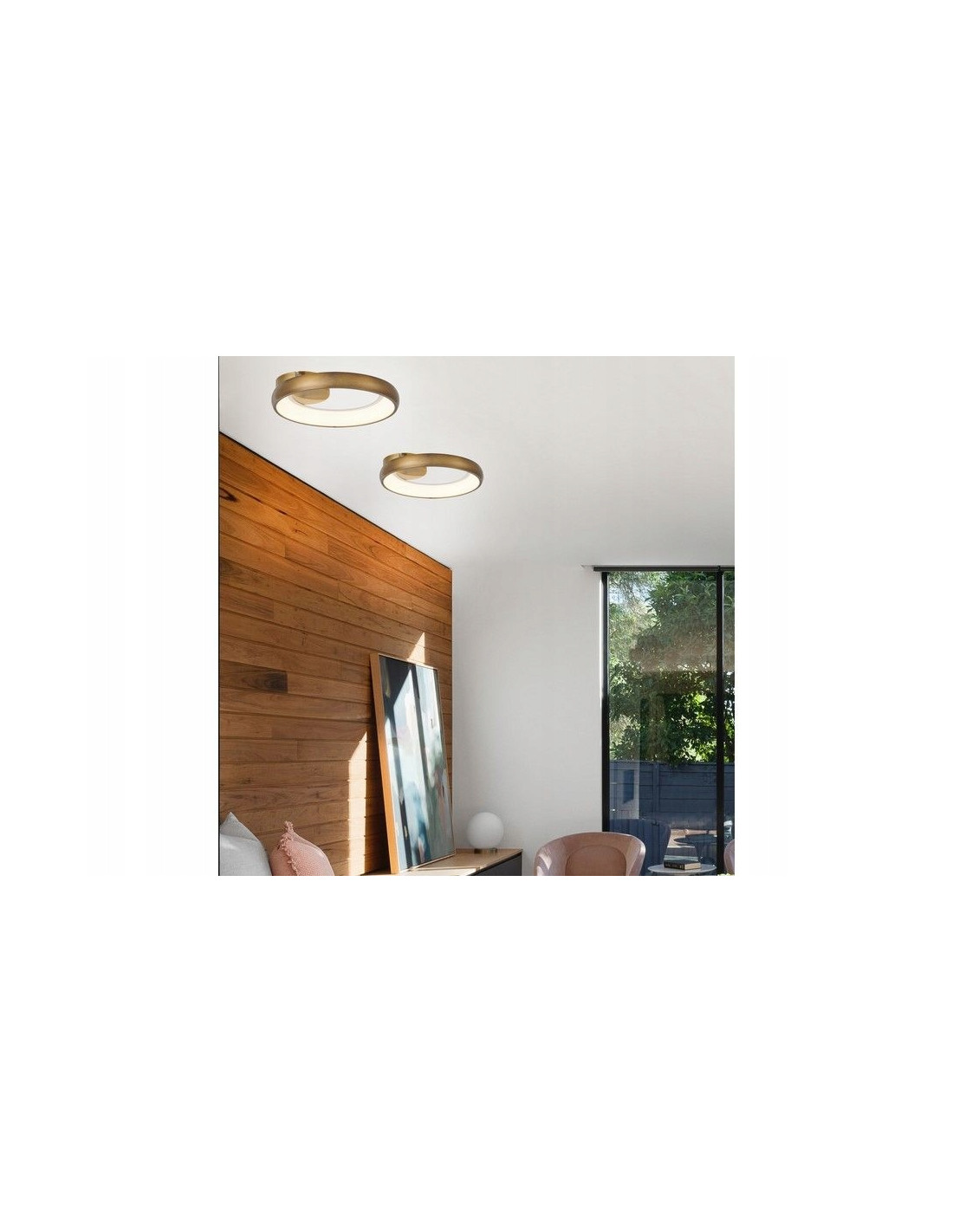 Nowoczesna lampa LED w kształcie doughnuta to elegancki element wystroju, który doskonale uzupełni różnorodne wnętrza. Okrągły, złoty plafon Thea łączy w sobie funkcjonalność oraz oryginalny design, co czyni go idealnym rozwiązaniem do korytarza, holu, kuchni oraz innych pomieszczeń.
