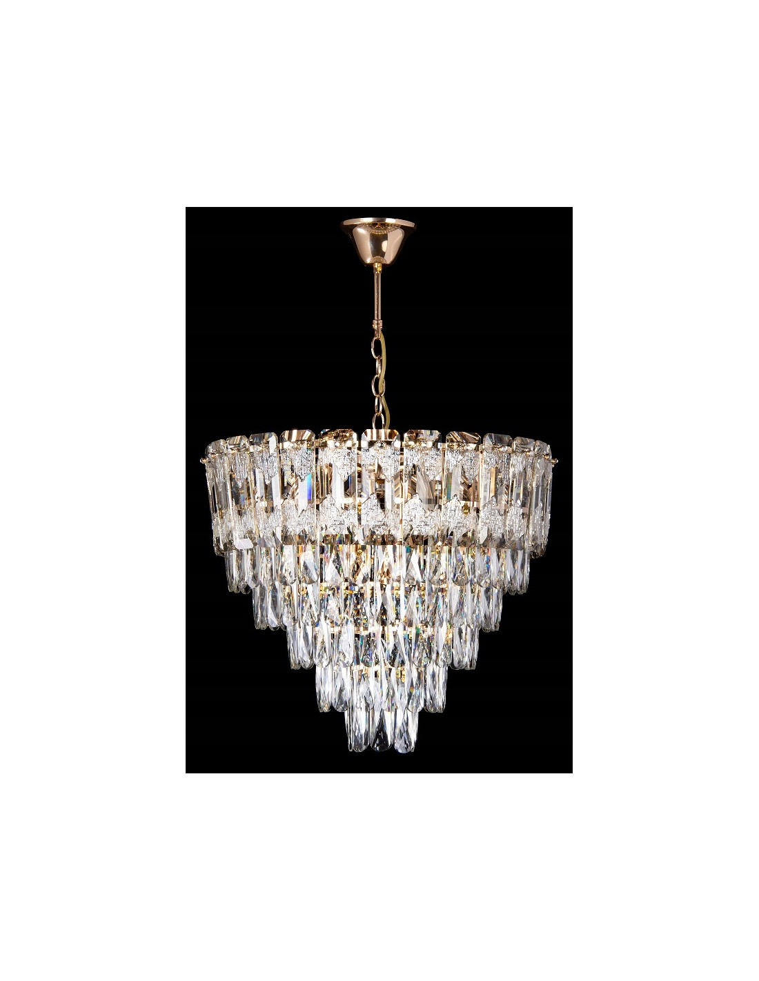 Wykonana z wysokiej jakości materiałów, lampa charakteryzuje się zastosowaniem kryształków zawieszonych na stylowych łańcuszkach, które nie tylko podkreślają jej wyjątkowy design, ale również efektywnie rozpraszają światło, tworząc niezwykle estetyczne doznania. Ta lampa nie tylko udekoruje każde pomieszczenie, ale także stworzy niepowtarzalny klimat, idealny na wesela, w eleganckich hotelach czy innych przestrzeniach wymagających wyjątkowego oświetlenia.