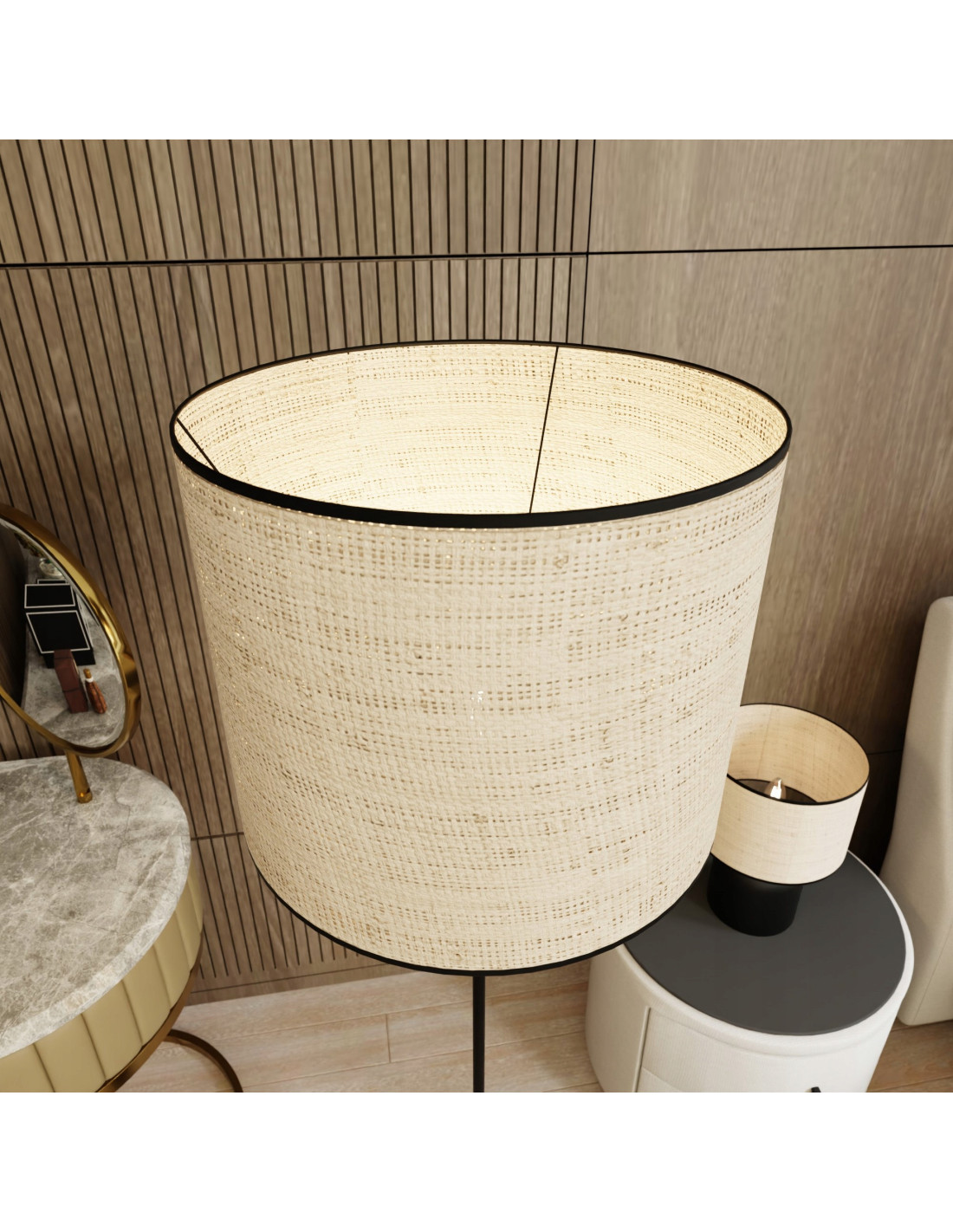 Wysoka na 142 cm lampa posiada klosz o średnicy 144 cm wykonany z rattanowych elementów, które dodają jej odrobiny naturalnego uroku. W połączeniu z metalową podstawą, całość prezentuje się niezwykle stylowo. Lampa ASPEN LP1 dostępna jest w kilku wariantach kolorystycznych, co pozwala na jej łatwe dopasowanie do istniejącego wystroju wnętrza.