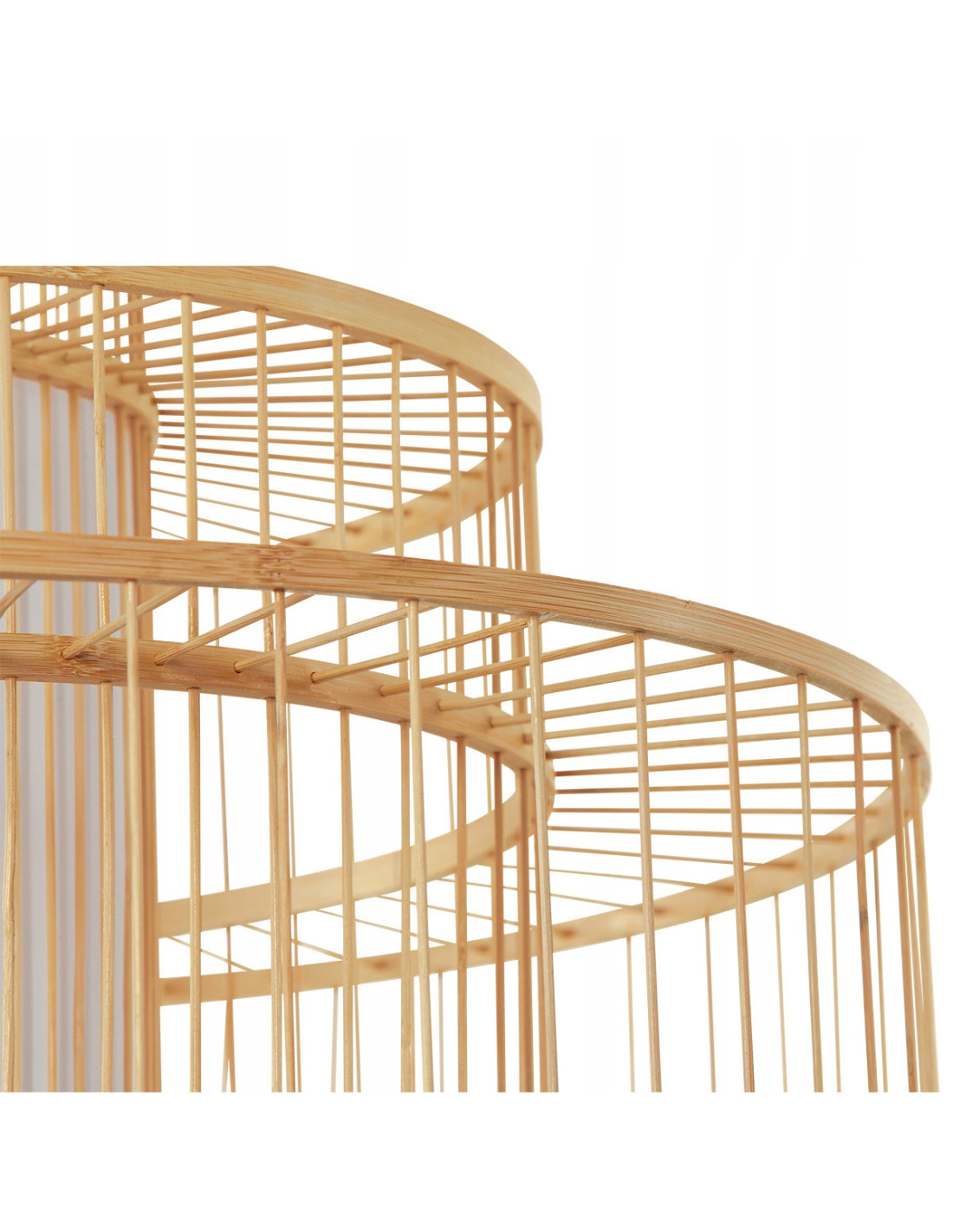 Duża drewniana lampa klatka Stela to niezwykły element, który stanie się ozdobą Twojego wnętrza. Jej ekologiczna konstrukcja, stworzona z naturalnego rattanu, doskonale wpisuje się w aktualne trendy wnętrzarskie, oferując nie tylko stylowy, ale również przyjazny dla środowiska wybór. Wprowadza do pomieszczeń lekkość i przestronność, a jej ażurowa forma pozwala na subtelne rozpraszanie światła, co sprawia, że każda chwila spędzona w jej towarzystwie nabiera wyjątkowego charakteru.