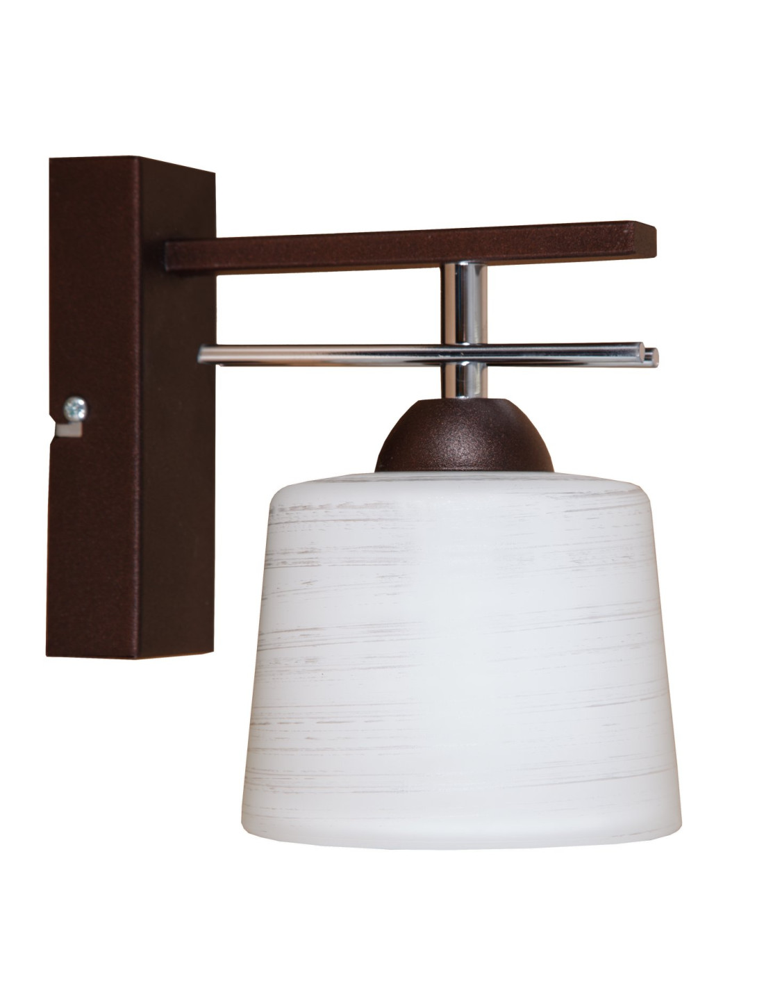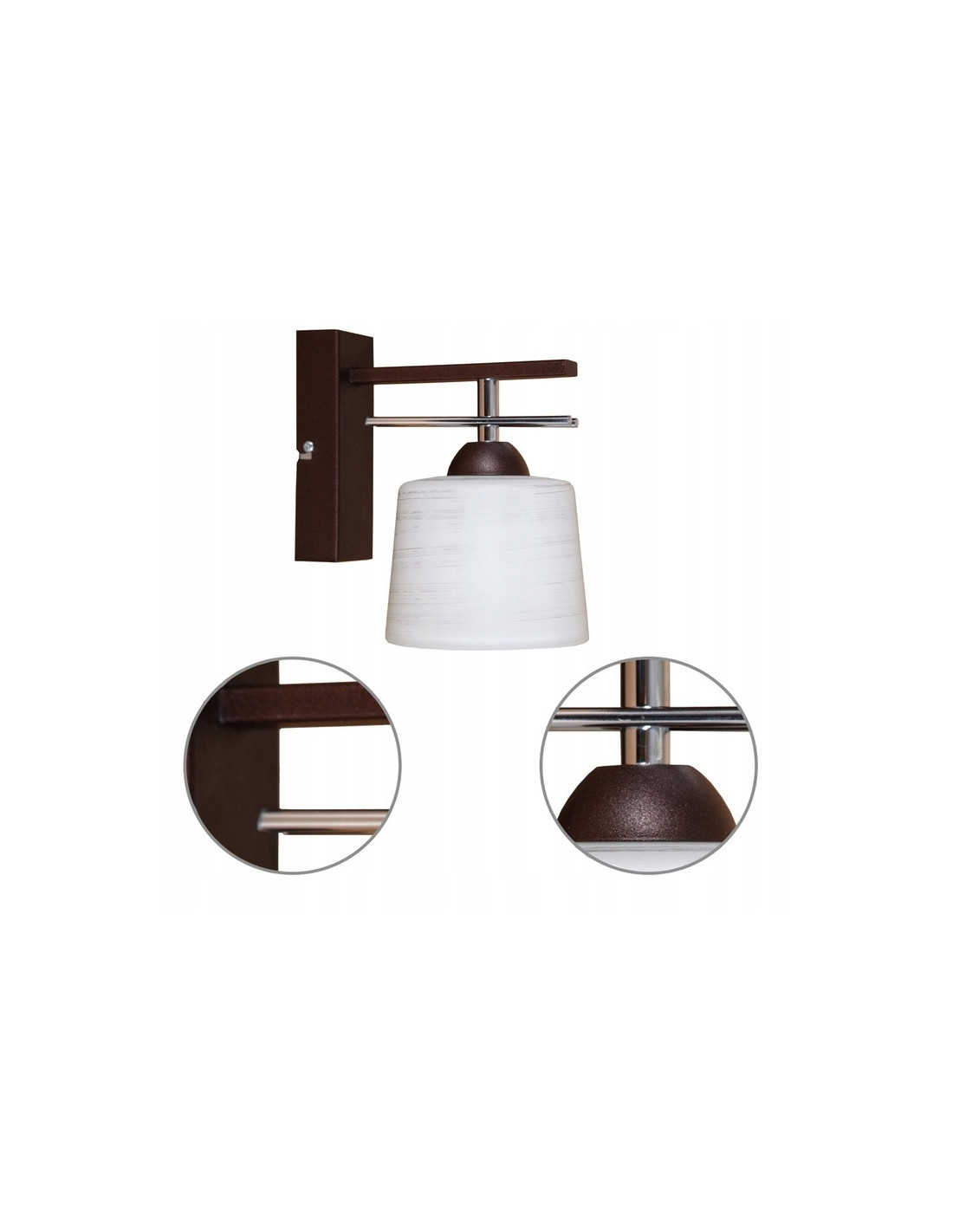 Wyróżniająca się efektowną konstrukcją, lampa łączy w sobie metalową bazę oraz subtelny szklany klosz, co tworzy harmonijną całość. Kinkiet doskonale sprawdzi się zarówno w salonie, kuchni, jadalni, sypialni, jak i w biurze, stając się kluczowym elementem dekoracyjnym oraz funkcjonalnym.