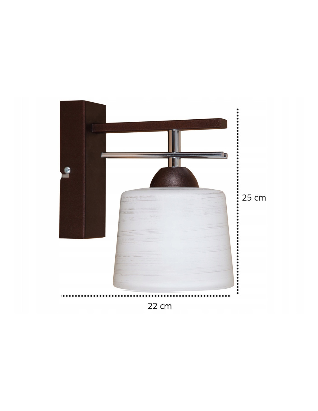 Parametry techniczne lampy również zasługują na uwagę. Wysokość kinkietu wynosi 25 cm, a szerokość to 22 cm. Lampa wyposażona jest w źródło światła o gwincie E27, umożliwiające zastosowanie żarówki o mocy do 60W. Warto podkreślić, że źródło światła nie jest dołączone do zestawu, co daje możliwość wyboru odpowiedniego oświetlenia nożonego do indywidualnych preferencji.