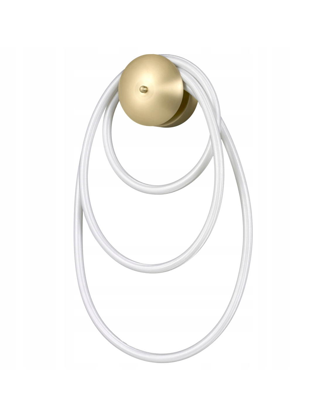 Kinkiet FANTASIA został wykonany z wysokiej jakości metalu w kolorze złotym, co nadaje mu luksusowy wygląd. Swobodnie opadające ledowe kółka w oplocie z białej tkaniny nie tylko przyciągają wzrok, ale również tworzą interesującą grę świateł, które pięknie odbijają się na ścianach, wypełniając pomieszczenie przyjemnym, ciepłym blaskiem. To idealna propozycja dla osób ceniących nowoczesny, a zarazem elegancki design.