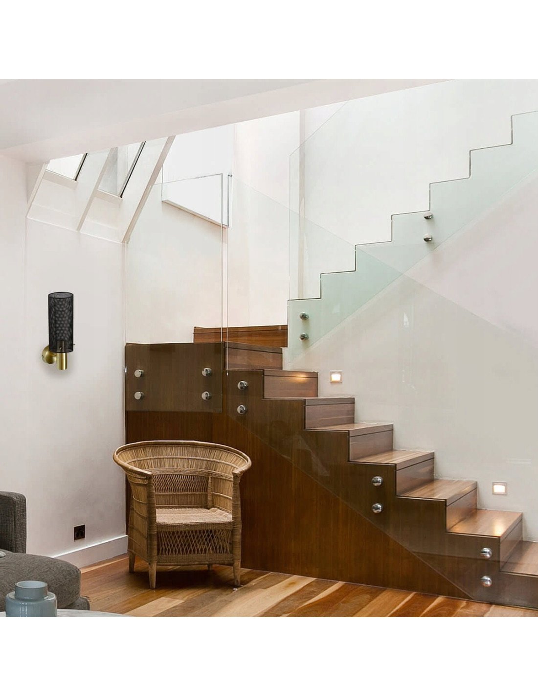 Wykonany z wysokiej jakości metalu, kinkiet Tirana łączy w sobie piękno z praktycznością. Czarna siateczka otaczająca głowicę emanuje nowoczesnym stylem, jednocześnie nadając przytulności pomieszczeniu. Złote akcenty stanowią doskonały kontrast, który przyciąga wzrok i podkreśla unikalność lampy.