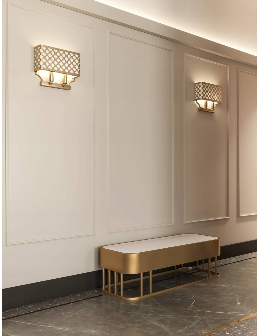Lampa Verno Parette Cromo to idealne połączenie klasycznego stylu z nowoczesnym designem, która doskonale wpasuje się w eleganckie wnętrza. Jej chromowane wykończenie oraz żurowy klosz o geometrycznym wzorze nadają jej lekkości i wyjątkowego charakteru. Ta lampa stanowi doskonały element dekoracyjny, który doda blasku i elegancji każdemu pomieszczeniu.