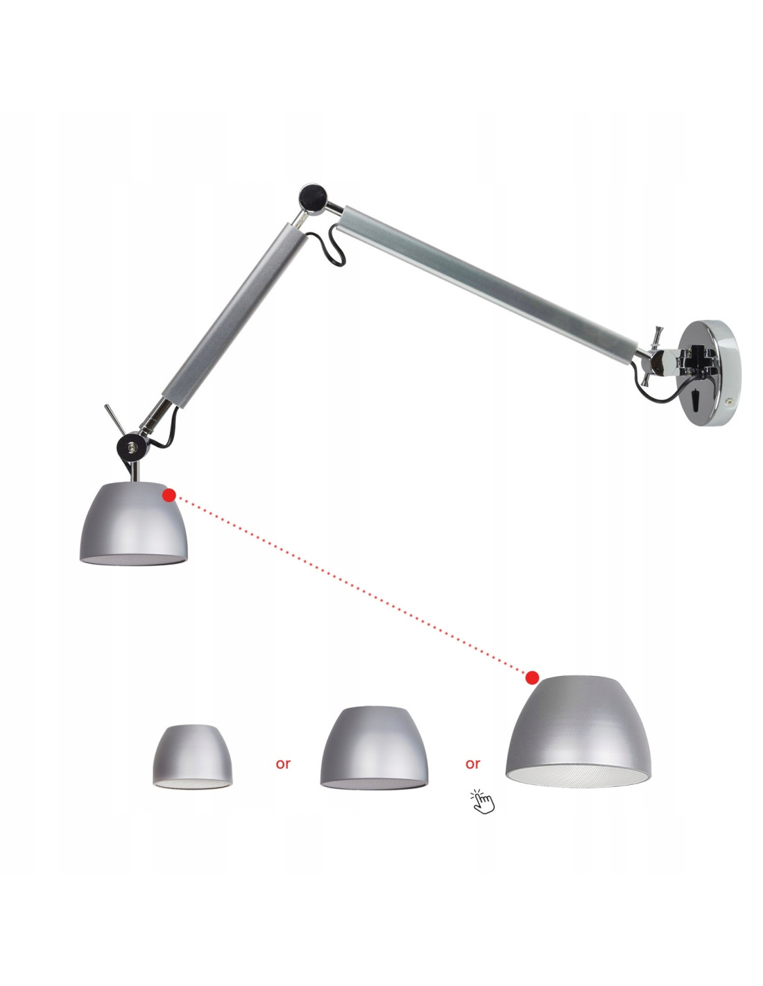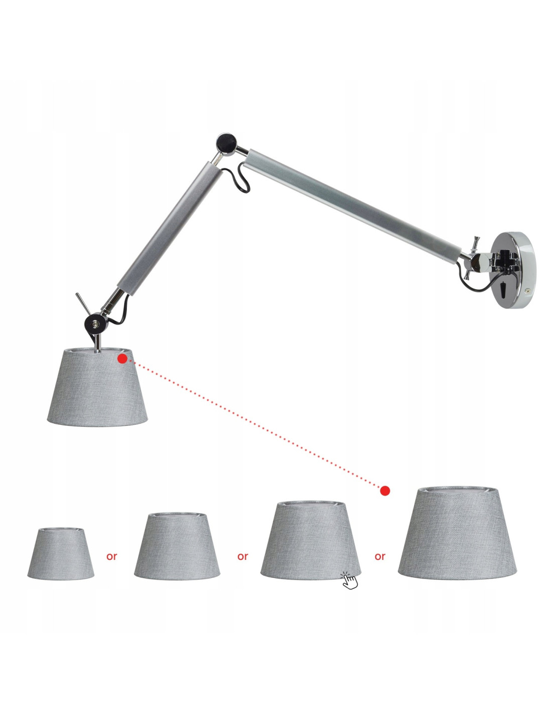 Srebrna długa lampa na wysięgniku ZYTA WALL S to idealne rozwiązanie dla osób poszukujących eleganckiego oświetlenia, które doda charakteru zarówno przestrzeni domowej, jak i biurowej. Jej nowoczesny design oraz funkcjonalność sprawiają, że jest to produkt, który z łatwością dopasuje się do różnych aranżacji. Dzięki zastosowaniu regulowanego wysięgnika, użytkownicy mogą dostosować wysokość lampy do swoich indywidualnych potrzeb.