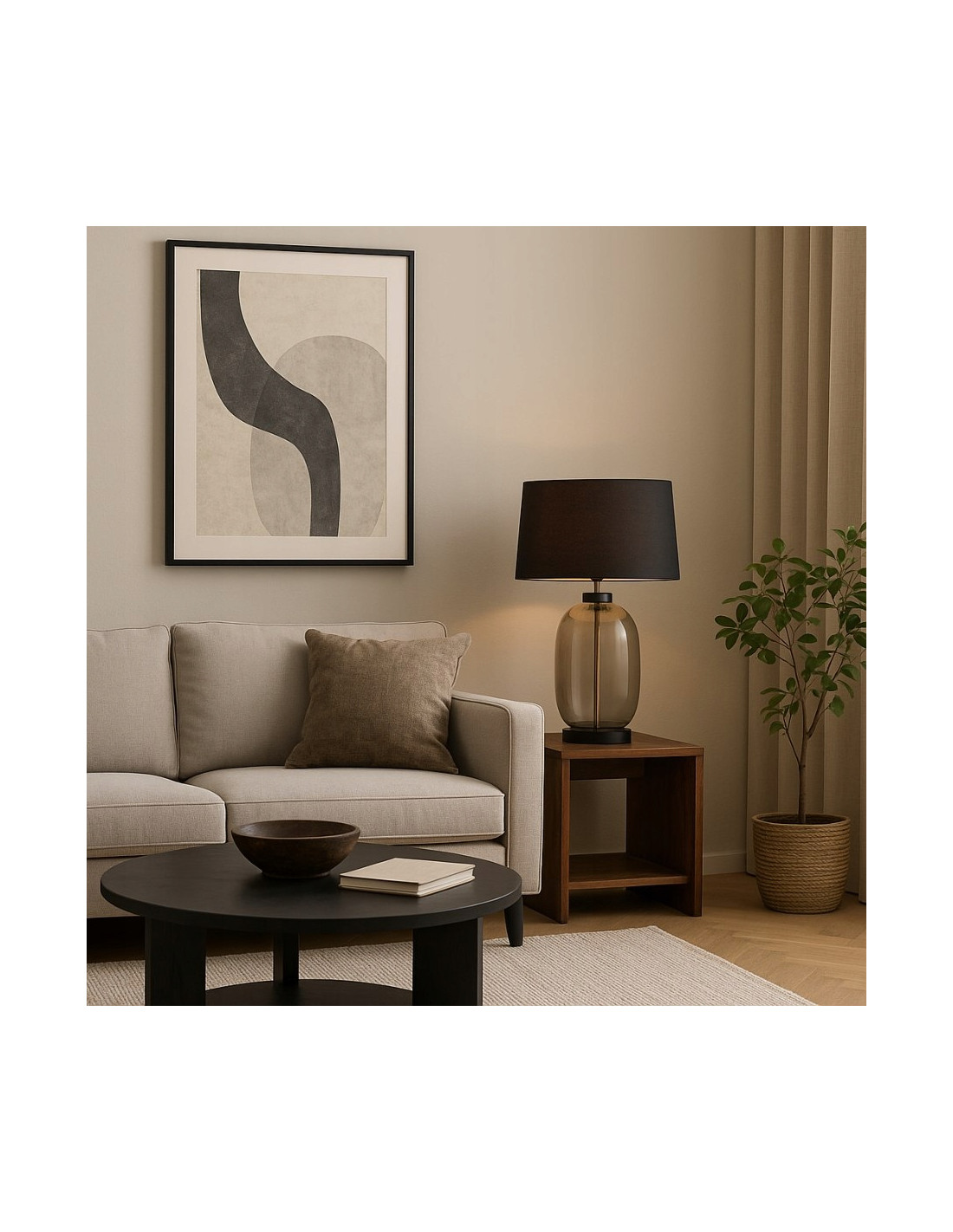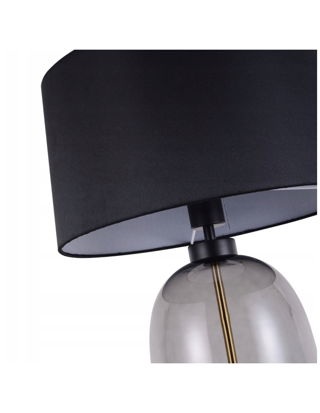Dymna szklana bańka lampy Amur w połączeniu z tkaninowym abażurem dodaje jej szlachetności i subtelnego luksusu. Szklana podstawa w dymnym odcieniu harmonijnie koresponduje z czarnymi akcentami, co czyni ten model wyjątkowym dodatkiem do każdego wnętrza. Stylowe wykończenie i dbałość o detale podkreślają niepowtarzalny charakter lampy.