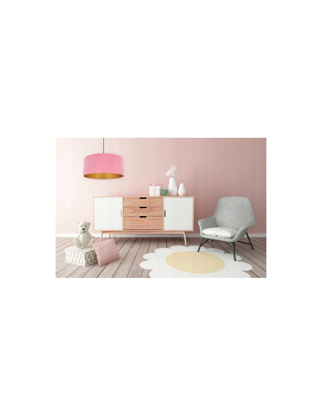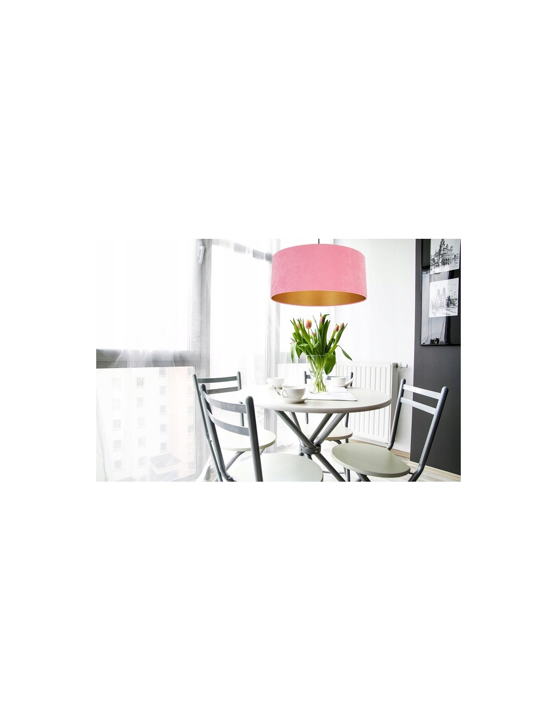 Wyraziste oświetlenie o złotym blasku z wnętrza abażura MEDIOLAN to lampa, która łączy w sobie elegancję i nowoczesność. Jej imponujący abażur o średnicy 44 cm wykonany z wysokiej jakości tkaniny welurowej w kolorze różowym, dodaje wnętrzu niepowtarzalnego charakteru. Złote wykończenie wewnętrzne klosza sprawia, że światło staje się miękkie i rozproszone, tworząc przytulny klimat w każdym pomieszczeniu.