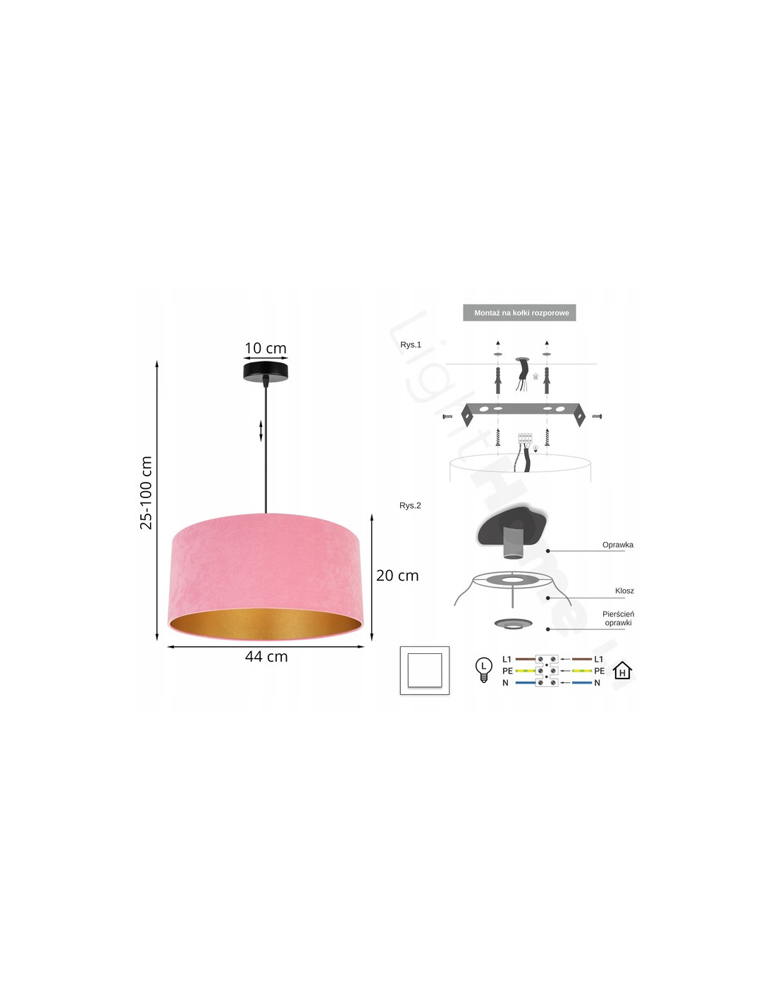 - Źródło światła: E27 x 1 (żarówka nie jest dołączona)