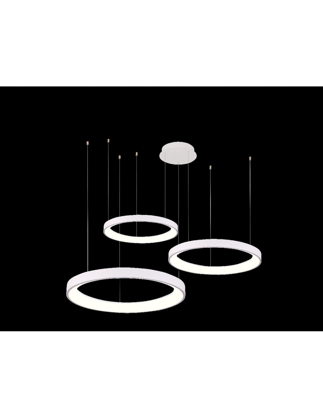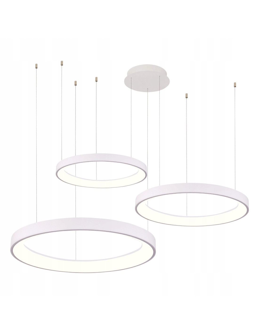 Elegancka lampa sufitowa AGNES o geometrycznej formie 3 okręgów to idealne rozwiązanie dla osób poszukujących nowoczesnego i efektownego oświetlenia. Charakteryzuje się futurystycznym designem, który doskonale wkomponuje się w różne aranżacje wnętrz. Ta wyjątkowa oprawa wisząca staje się centralnym punktem każdego pomieszczenia, a jej minimalistyczna forma przyciąga wzrok.