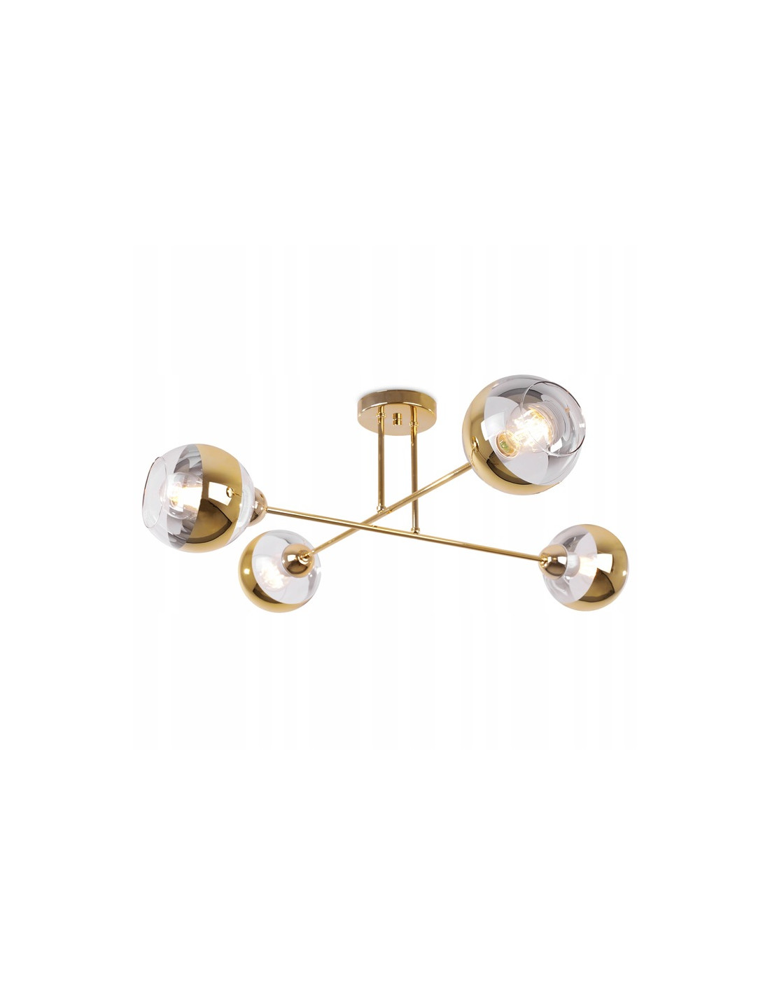 Złoty plafon glamour w stylu sterylnych wnętrz, lampa Asturia 4, to idealne rozwiązanie dla osób poszukujących eleganckiego oraz nowoczesnego oświetlenia. Dzięki minimalistycznemu designowi, ten produkt z łatwością wpasuje się w różnorodne aranżacje w salonach, jadalniach czy sypialniach. Przyciąga uwagę czterema lśniącymi, złotymi kloszami, które umieszczone są na końcach metalowego ramienia wykończonego w tym samym efektownym kolorze.