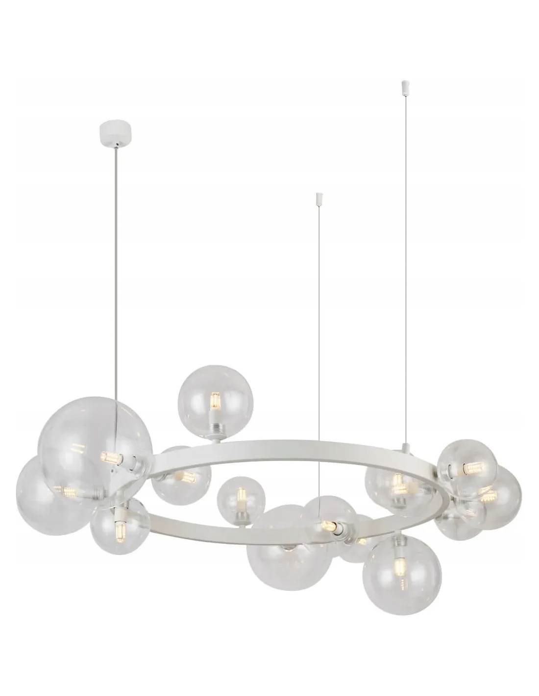 Biała okrągła lampa z 15 kloszami BUBBLES ROUND to niezwykle elegancki element oświetleniowy, który doskonale sprawdzi się w różnych wnętrzach. Dzięki nowoczesnej konstrukcji oraz geometrycznemu designowi, będzie idealnym uzupełnieniem salonu, jadalni, biura czy sypialni. Jej regulowana wysokość pozwala na dopasowanie lampy do indywidualnych potrzeb użytkowników, co czyni ją niezwykle praktycznym rozwiązaniem.