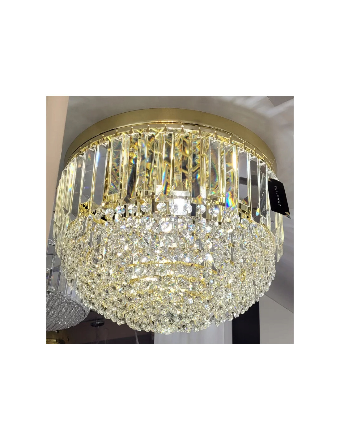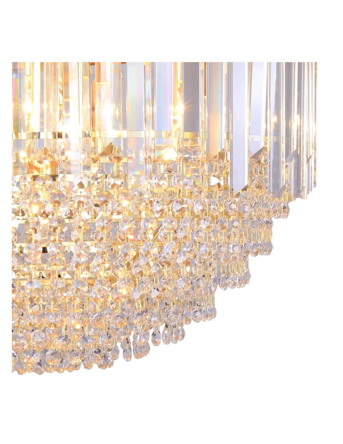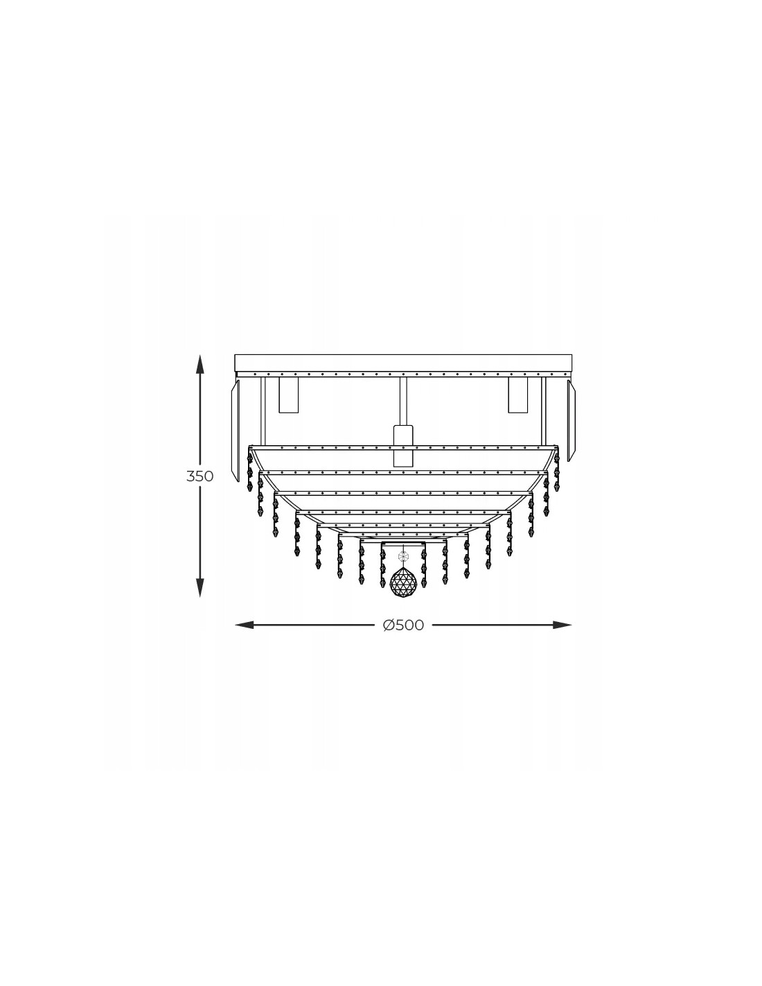 W centralnej części lampy znajduje się złota podsufitka, która efektownie podtrzymuje szklaną obudowę ozdobioną kryształkami. Ten szczegółowy projekt sprawia, że każda lampa staje się nie tylko źródłem światła, ale również elementem dekoracyjnym, który wzbogaca wnętrze. Dzięki temu, lampa Charlotte to idealny dodatek nad narożnikiem lub sofa w salonie, tworząc przytulną i elegancką atmosferę.