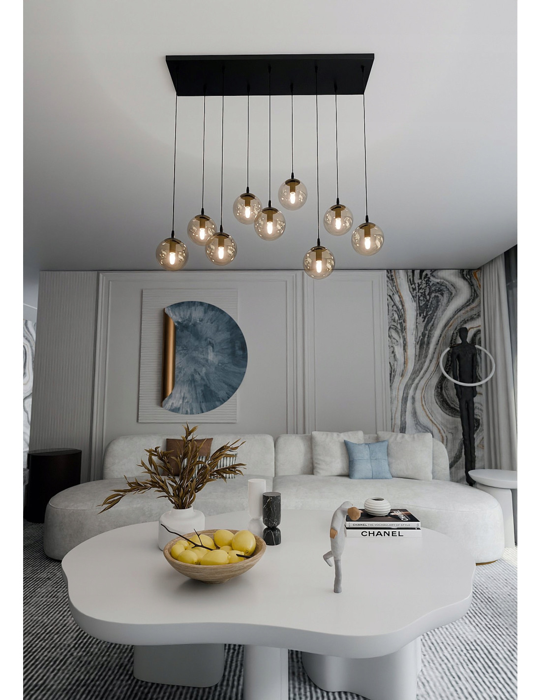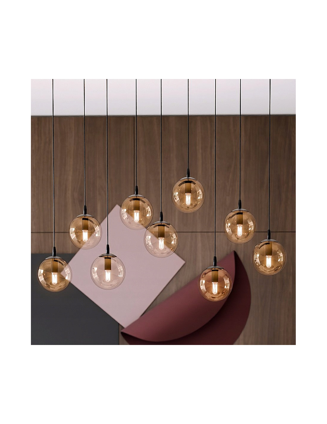 Odkryj Industrialną lampę sufitową z serii COSMO, która łączy w sobie nowoczesny design oraz funkcjonalność. Ta elegancka lampa z miodowymi szklanymi kulami wkomponuje się w każde wnętrze, nadając mu wyjątkowego charakteru. Bez względu na to, czy planujesz jej montaż w sypialni, holu, czy biurze, lampa COSMO wprowadzi do wnętrza przytulną i ciepłą atmosferę.
