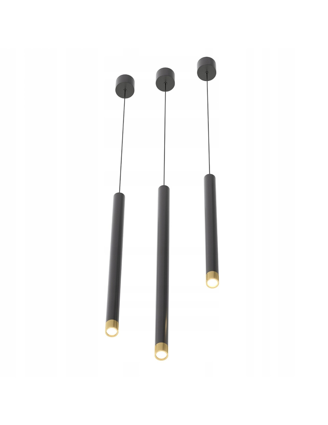 Lampa wisząca Q I Nero / Gold 50 to doskonałe połączenie nowoczesnego designu z elegancją, które wyróżnia się na tle innych produktów. Jej smukła, cylindryczna forma w matowej czerni przełamana jest subtelnym złotym akcentem, co nadaje lampie wyrafinowanego charakteru. Ten czarno-złoty model doskonale wpisuje się w trendy minimalizmu oraz loftowego stylu, co czyni go idealnym dodatkiem do nowoczesnych wnętrz.