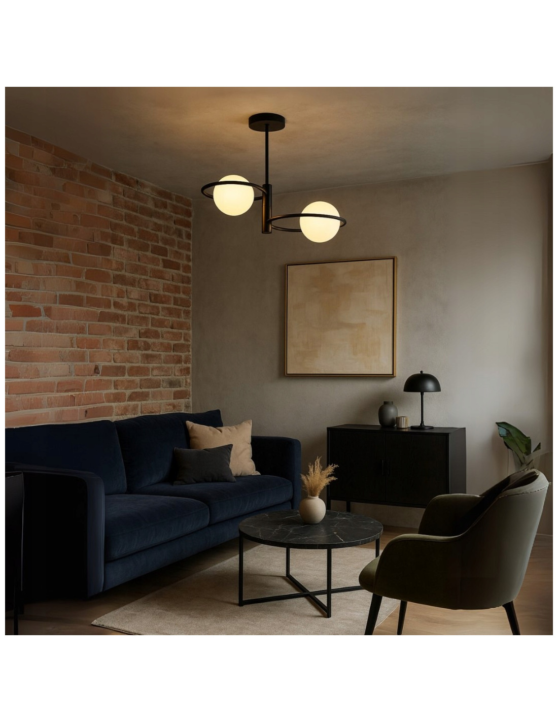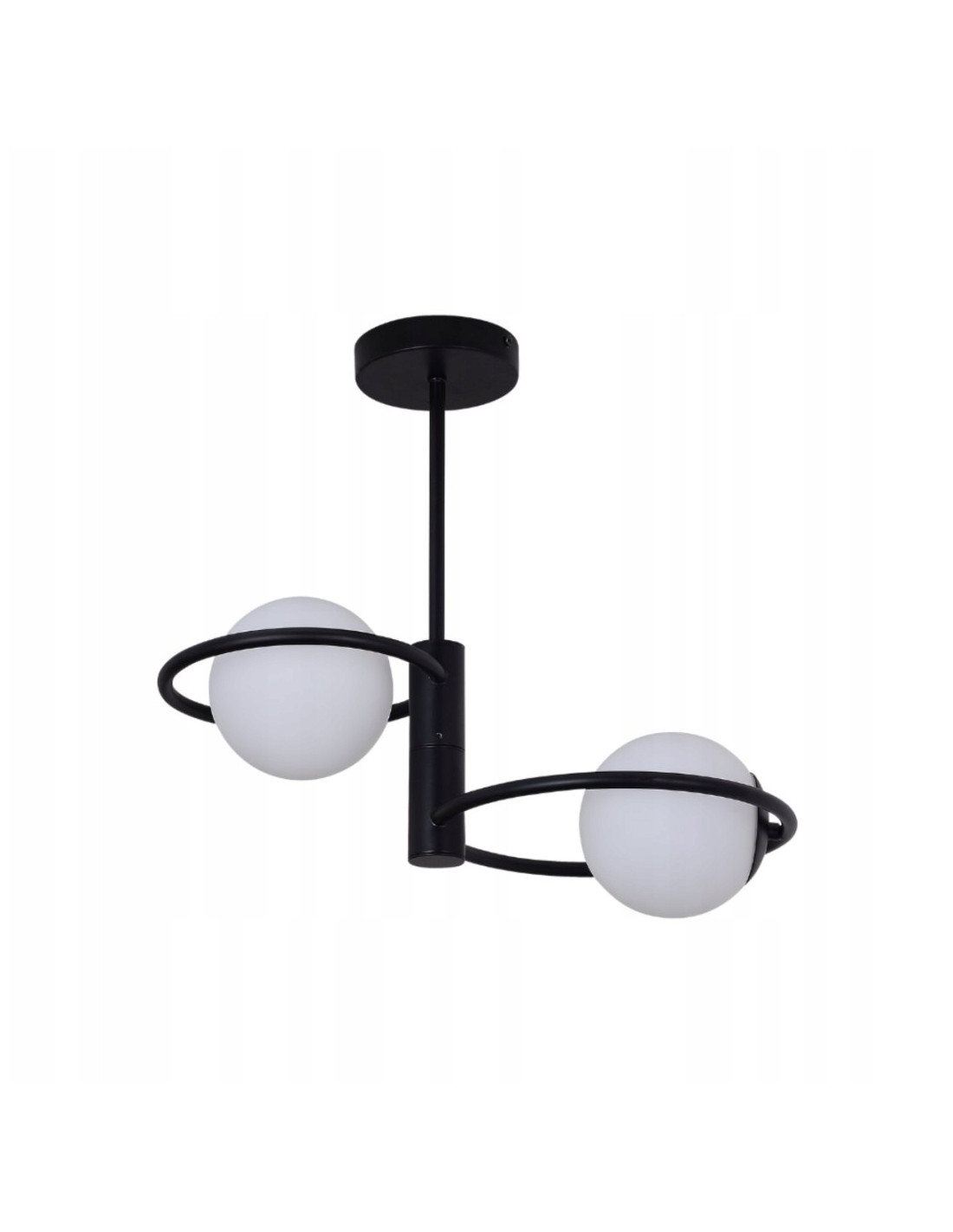 Klosze o kształcie kulistym wykonane z mlecznego szkła zapewniają równomierne i przyjemne oświetlenie w każdym wnętrzu. Dodatkowo, ich subtelny biały kolor w połączeniu z czarną metalową konstrukcją wprowadza do pomieszczeń elegancję i nowoczesność. Plafon sprawdzi się znakomicie w salonie, jadalni czy sypialni, pełniąc funkcję zarówno oświetleniową, jak i dekoracyjną.