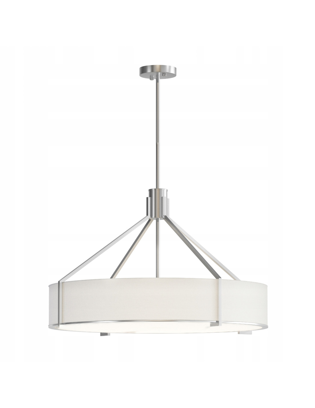 - Materiał: Metal (satynowy nikiel), Tkanina (biały kremowy), Szkło (biały matowy)