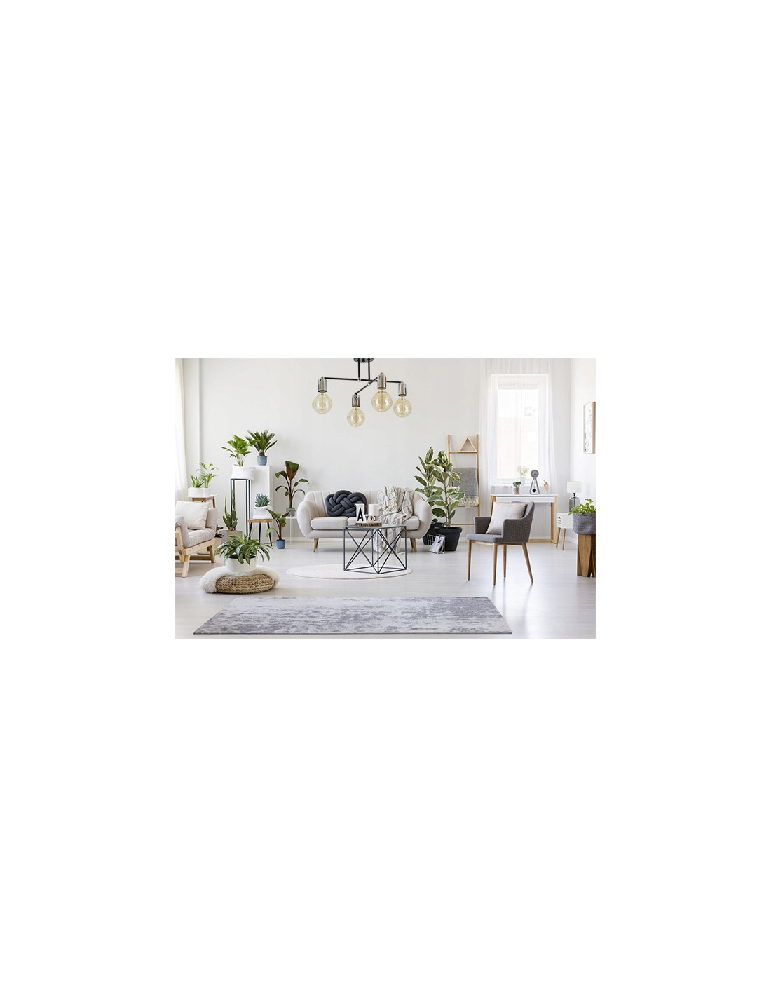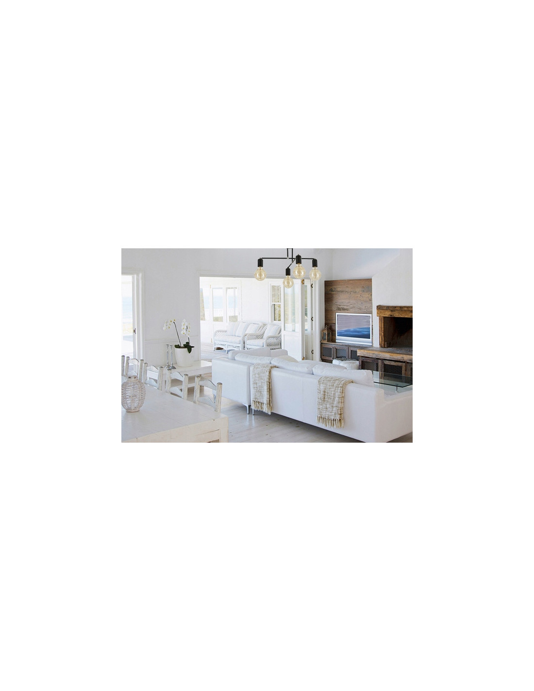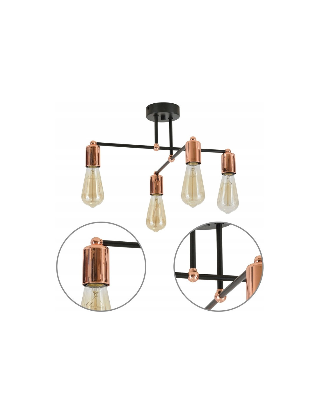 Wymiary lampy EDISON to: wysokość 23 cm oraz szerokość 48 cm, co sprawia, że bez trudu dopasuje się do większości pomieszczeń. Lampa obsługuje cztery źródła światła E27, każde o maksymalnej mocy 60W, co daje możliwość osiągnięcia intensywności oświetlenia zależnie od potrzeb i preferencji. Warto zaznaczyć, że źródło światła nie jest w komplecie, co pozwala na większą swobodę wyboru odpowiednich żarówek.