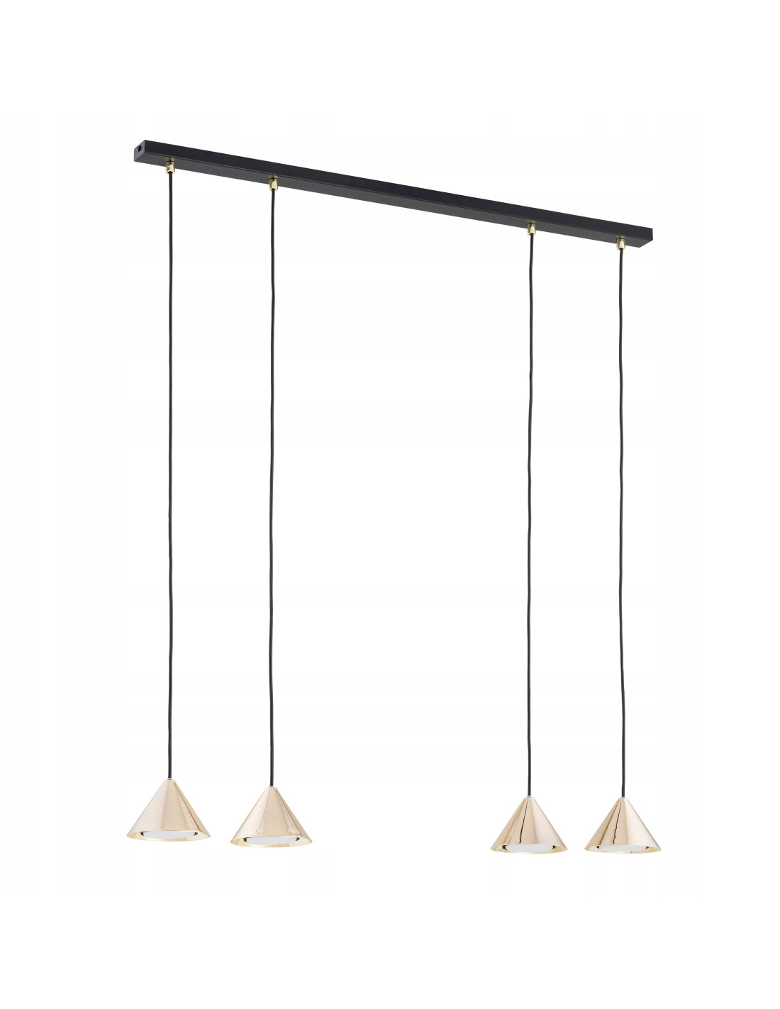 Podsumowując, Długa złota lampa 4 klosze spot ELIT 4 BL GOLD to perfekcyjny wybór dla tych, którzy poszukują eleganckiego i nowoczesnego rozwiązania oświetleniowego. Jej uniwersalny charakter pozwala na zastosowanie w różnych stylach aranżacyjnych, a wysoka jakość wykonania zapewnia trwałość oraz satysfakcję z użytkowania.