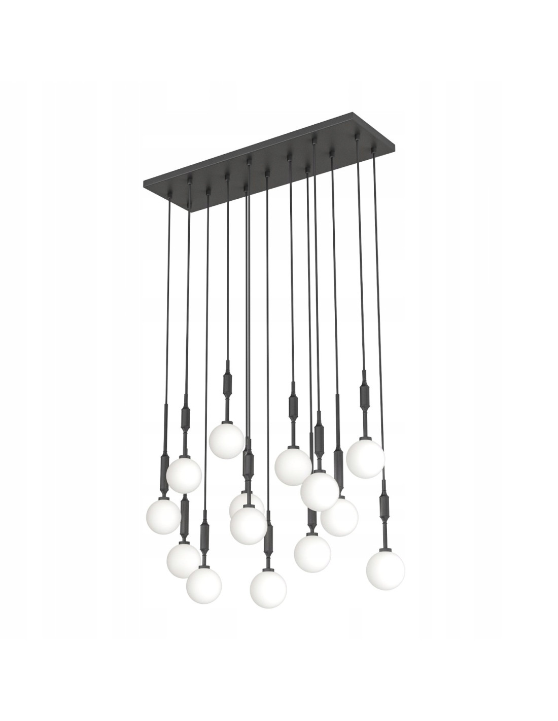 Podłużna lampa sufitowa Ero XIV Nero 80×25 to doskonały wybór dla osób, które cenią sobie nowoczesny design oraz elegancki minimalizm. Dzięki innowacyjnej konstrukcji, lampa ta staje się centralnym punktem każdego wnętrza, przyciągając uwagę swoją unikalną formą. Mleczne kule zawieszone na smukłych, czarnych przewodach tworzą efektowną kompozycję, która doskonale sprawdzi się w różnych aranżacjach, od jadalni po przestronny hol.