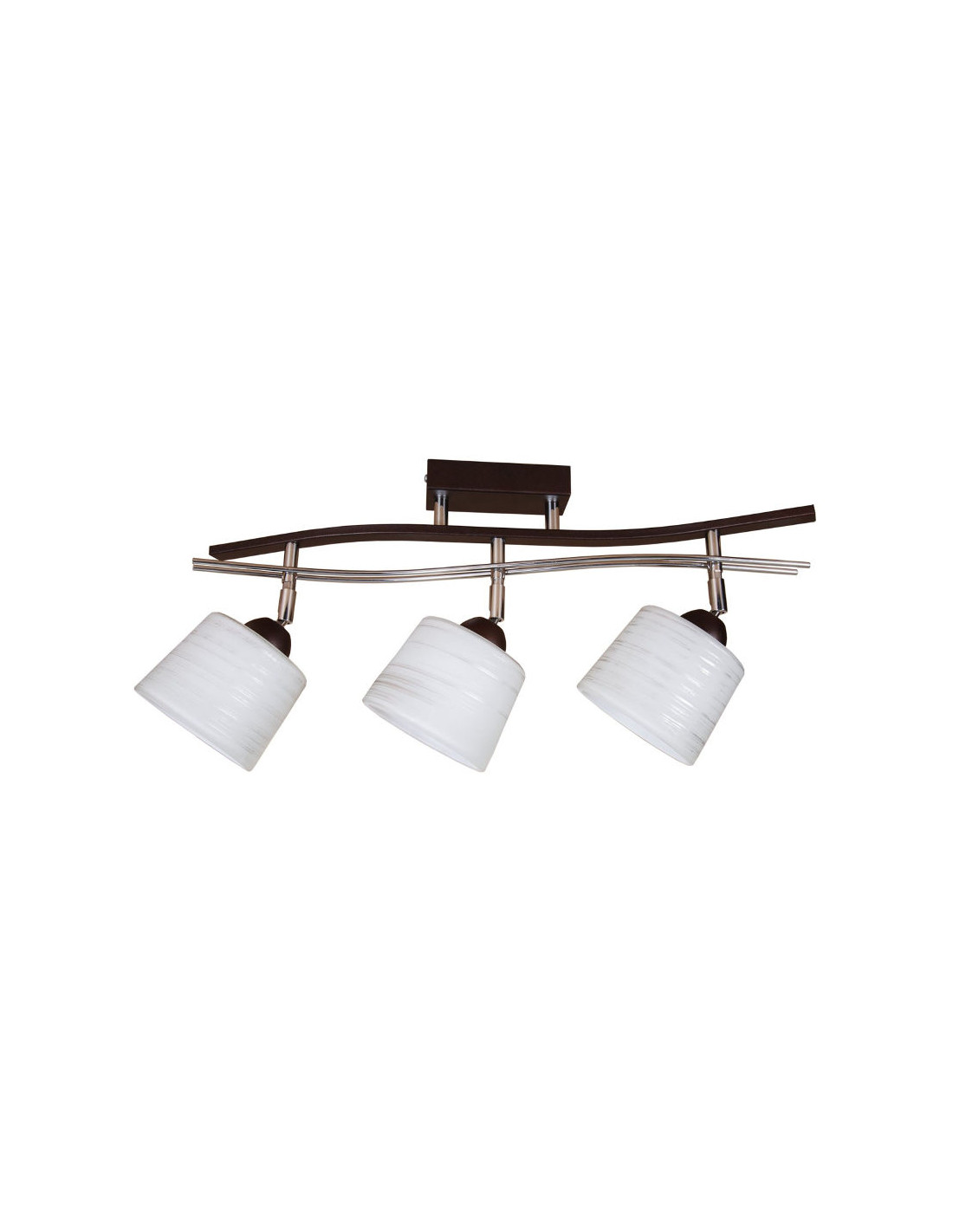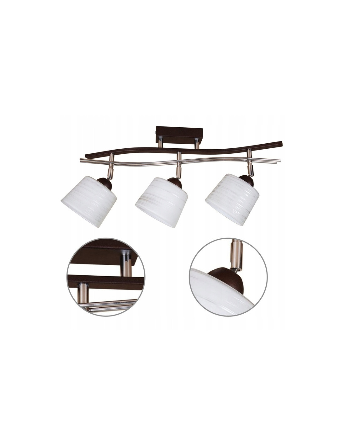 Wymiary lampy to: wysokość 24 cm oraz szerokość 66 cm, co sprawia, że jest to subtelny element dekoracyjny, nieprzytłaczający innych części wyposażenia. Dodatkowo, lampa wykorzystuje trzykrotne źródło światła o gwincie E27, co zapewnia maksymalną moc pojedynczego źródła światła wynoszącą 60W.