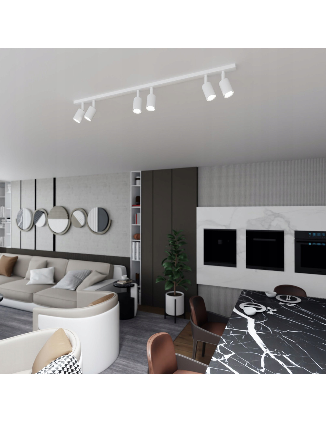 Lampy FLASH oferują aż 6 regulowanych reflektorów, które umożliwiają skoncentrowane oświetlenie w różnych kierunkach. Doskonała do jadalni, biura, kuchni, salonu czy sypialni, lampa idealnie nadaje się do codziennych zadań, takich jak czytanie lub praca przy biurku, oferując intensywne światło tam, gdzie go potrzebujesz.