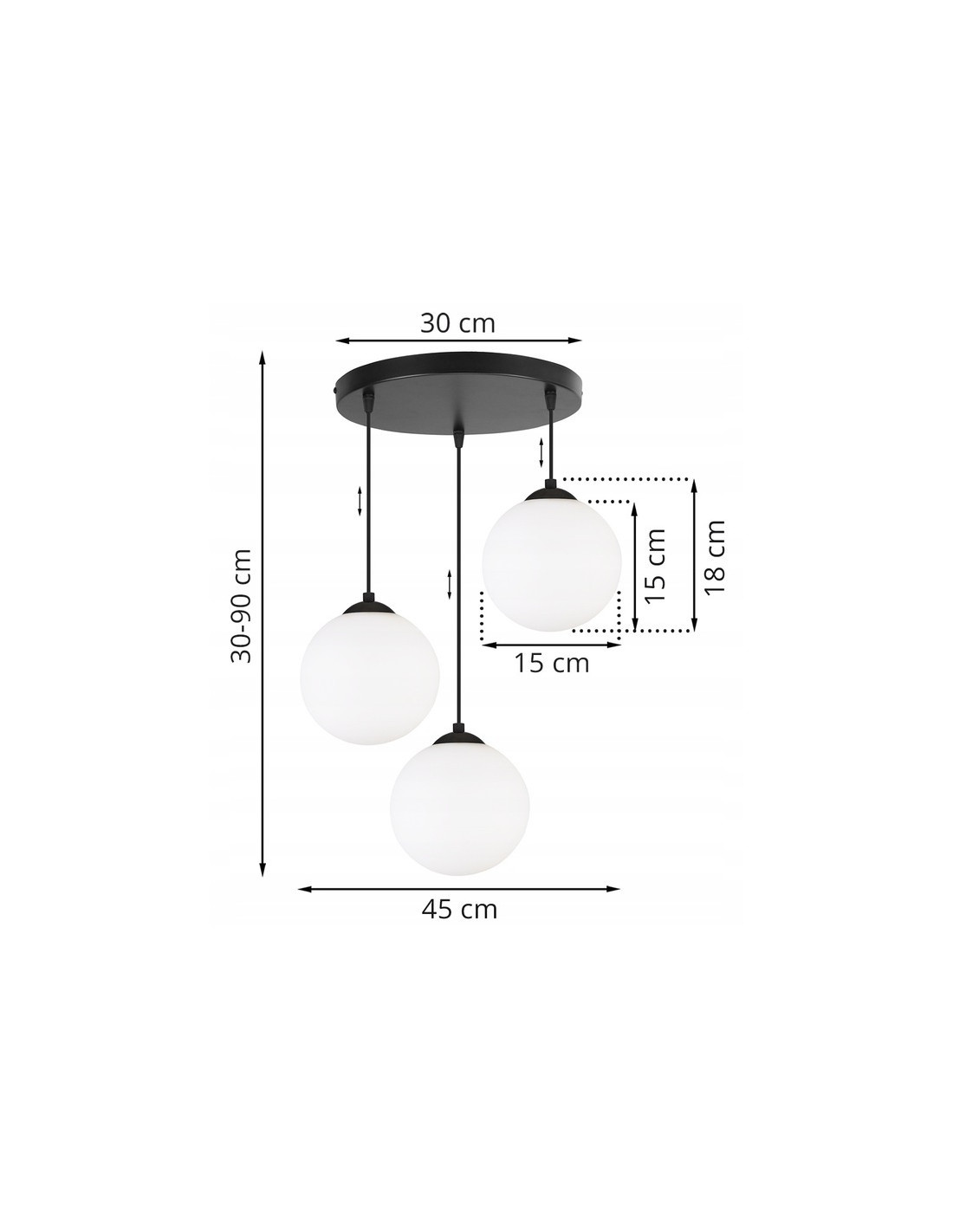 Lampa floRence charakteryzuje się okrągłą podsufitką i trzema okrągłymi kloszami o średnicy 15 cm, które wykonane są z mlecznego szkła. Dzięki tej konstrukcji, produkt generuje miękkie, rozproszone światło, które wprowadza przytulną atmosferę do każdego pomieszczenia. Wysokość lampy można regulować w zakresie 30-90 cm, co pozwala na dostosowanie jej do indywidualnych potrzeb użytkownika.