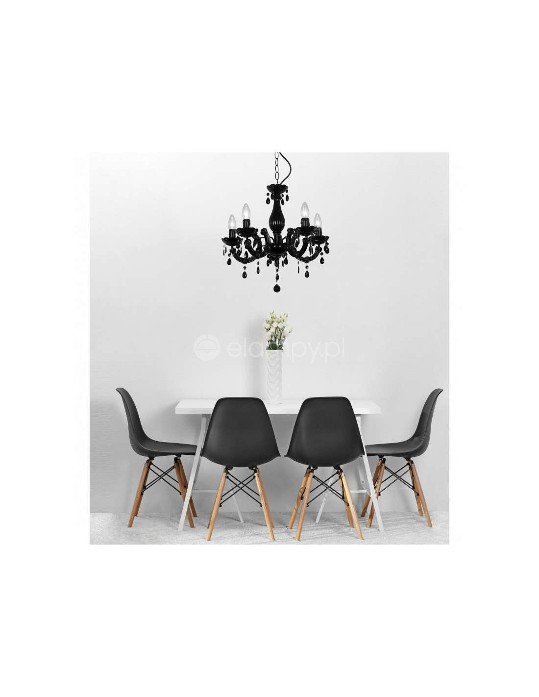 Wyposażona w pięć punktów świetlnych, lampa oferuje możliwość oświetlenia większych przestrzeni, a dzięki zastosowaniu tradycyjnych żarówek E14 o mocy do 40W, można dostosować intensywność światła do własnych potrzeb. Jej wysokość wynosząca 110 cm oraz szerokość 48 cm sprawiają, że lampa może pełnić rolę centralnego oświetlenia w różnych pomieszczeniach, takich jak salon, jadalnia, biuro czy korytarz.