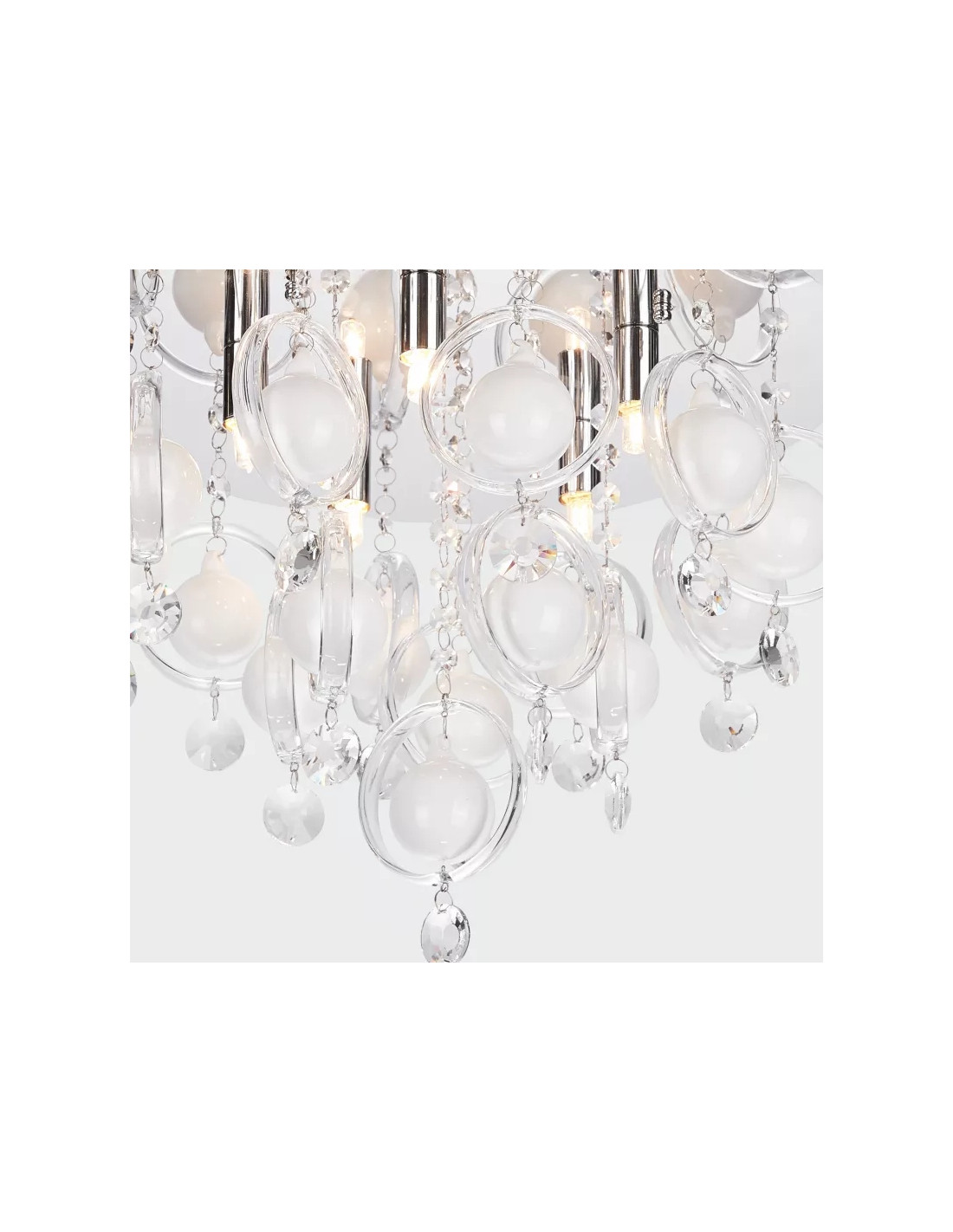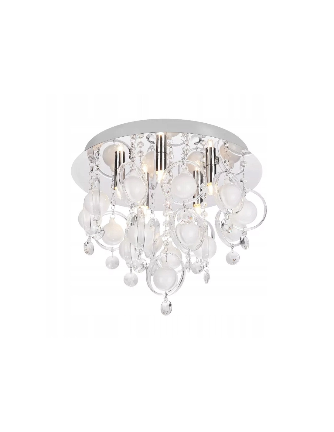 Lampa sufitowa GRESSA to elegancki i stylowy element oświetleniowy, który doskonale wpasuje się w aranżację wnętrz urządzonych w stylistyce glamour. Jej wyjątkowa konstrukcja, oparta na chromowanych łańcuszkach, dodaje wnętrzu niepowtarzalnego charakteru, przyciągając uwagę swoim pięknem i niezwykłymi detalami.