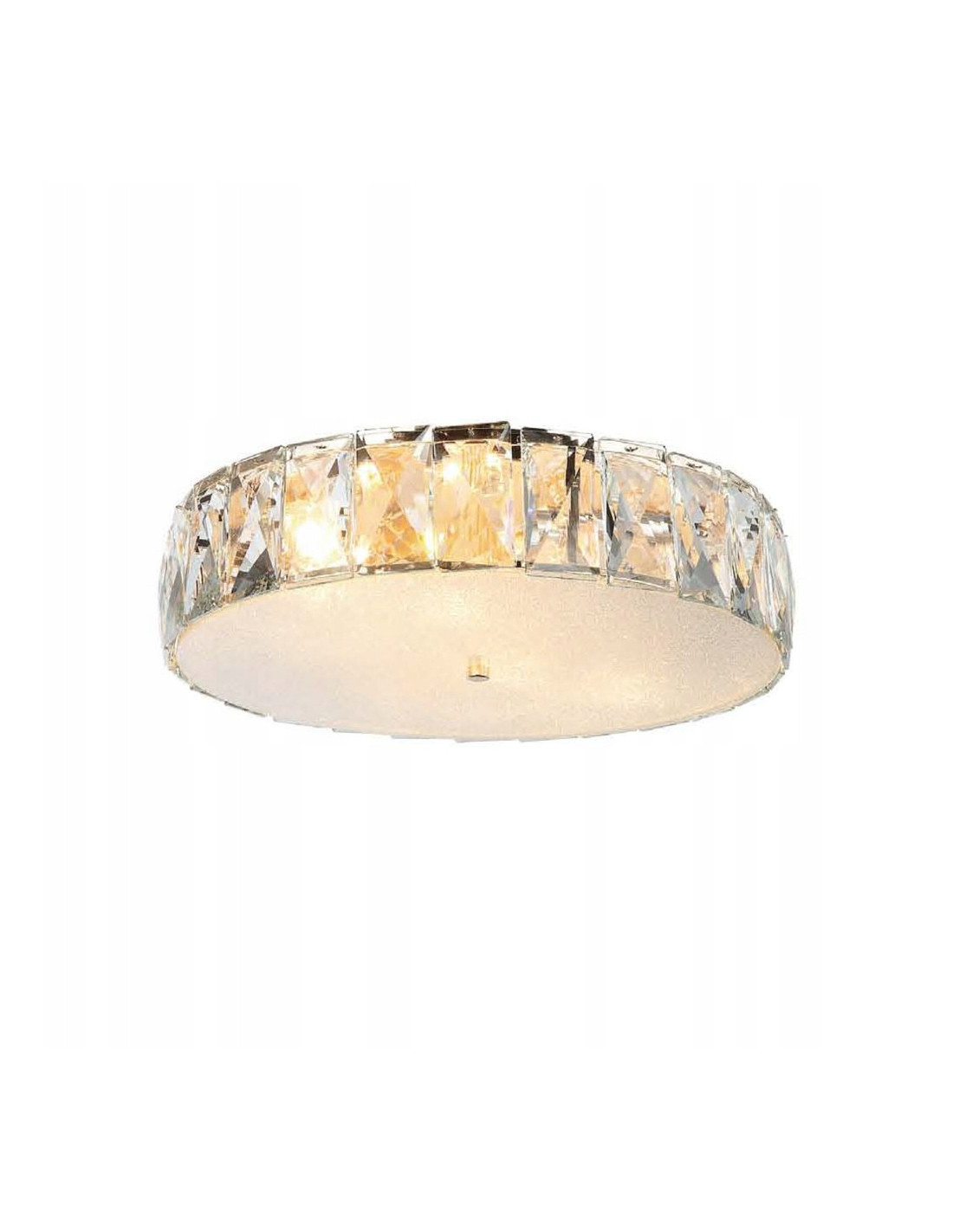 Plafon Intero Gold PL charakteryzuje się subtelnym połączeniem metalu w złotym kolorze oraz matowego szkła o kryształowej przejrzystości. Jego okrągły kształt i rozmach sprawiają, że jest to nie tylko źródło światła, ale również ciekawy element dekoracyjny. Ta lampa to kwintesencja dobrego smaku oraz funkcjonalności.