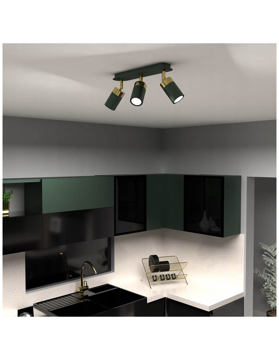 Odkryj nową jakość oświetlenia z trzypunktową lampką sufitową JOKER w ciemnej zieleni ze złotem, idealną do kuchni i nowoczesnych wnętrz. Ten elegancki element wyposażenia wzbogaci każde pomieszczenie, tworząc przytulną atmosferę w połączeniu z ponadczasowym stylem minimalistycznym. Lampy z kolekcji JOKER polskiej marki MiLAGRO łączą w sobie prostotę oraz wyszukane detale, które przyciągają wzrok.