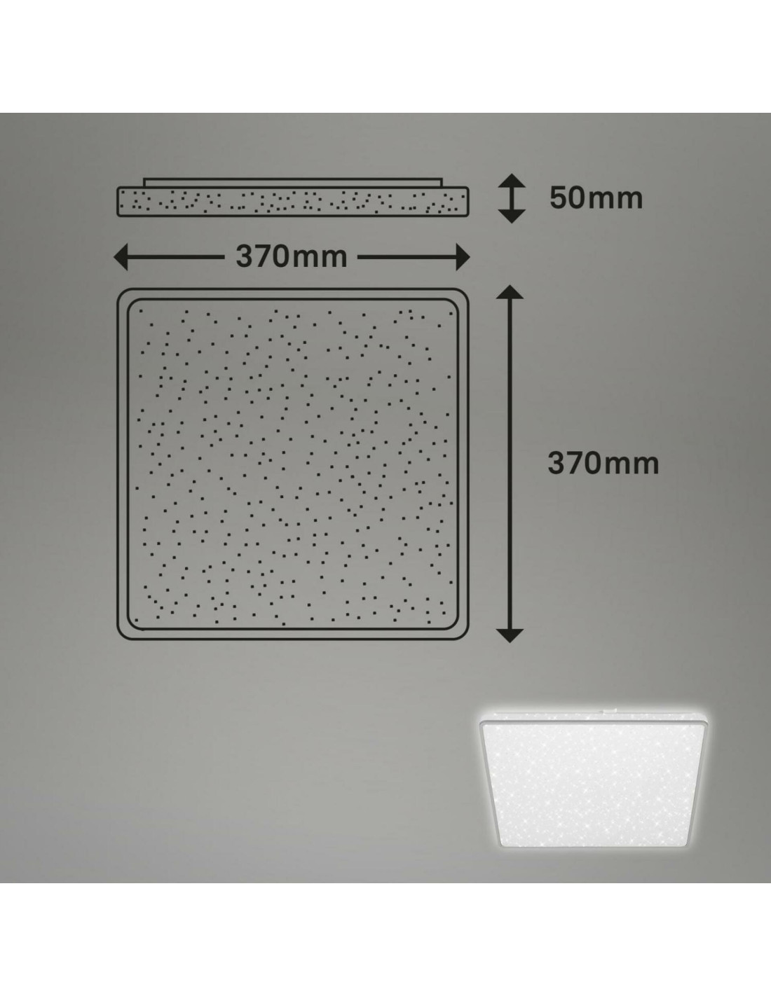 Lampa sufitowa BRILONER wyróżnia się płaską konstrukcją, co pozwala na montaż w miejscach, gdzie przestrzeń jest ograniczona. Jej wymiary to 370 x 370 x 50 mm, co czyni ją idealnym wyborem do nowoczesnych wnętrz. Dodatkowo, bardzo wąska ramka w kolorze matowego chromu nadaje jej eleganckiego wyglądu, doskonale dopełniając każdy wystrój.