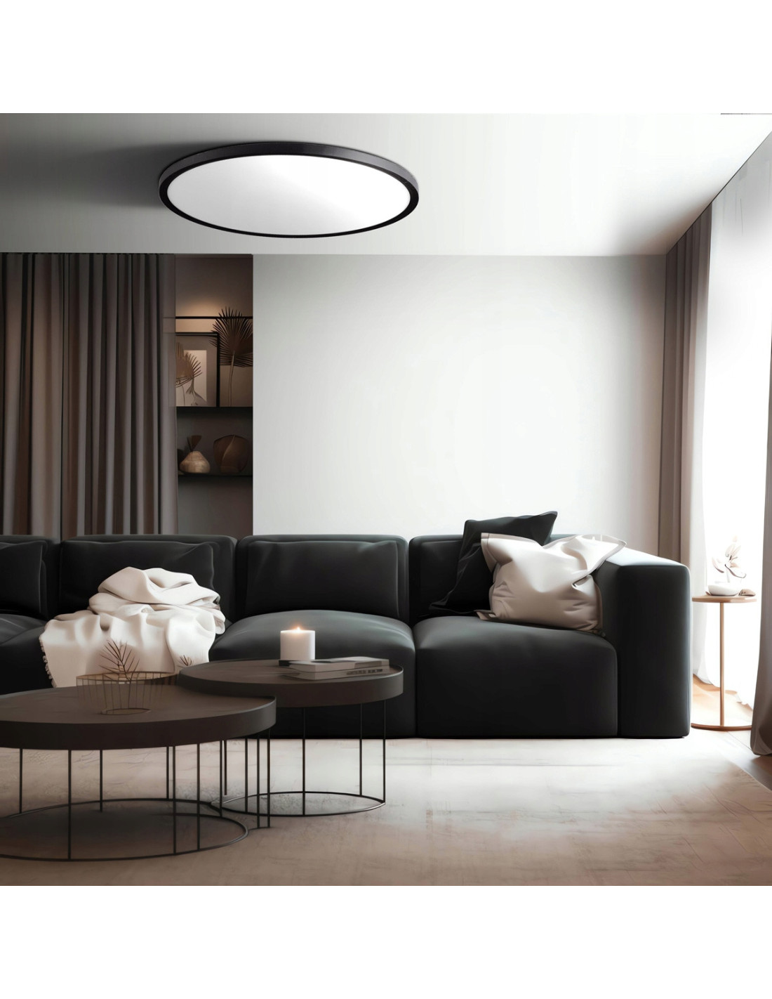 Odkryj nowoczesne oświetlenie w najnowszym modelu plafonu okrągłego LED California o średnicy 48 cm. Ten elegancki plafon z czarnym rantem doskonale uzupełni każdy korytarz czy inne pomieszczenia, tworząc przytulną atmosferę, która zachwyci Twoich gości.