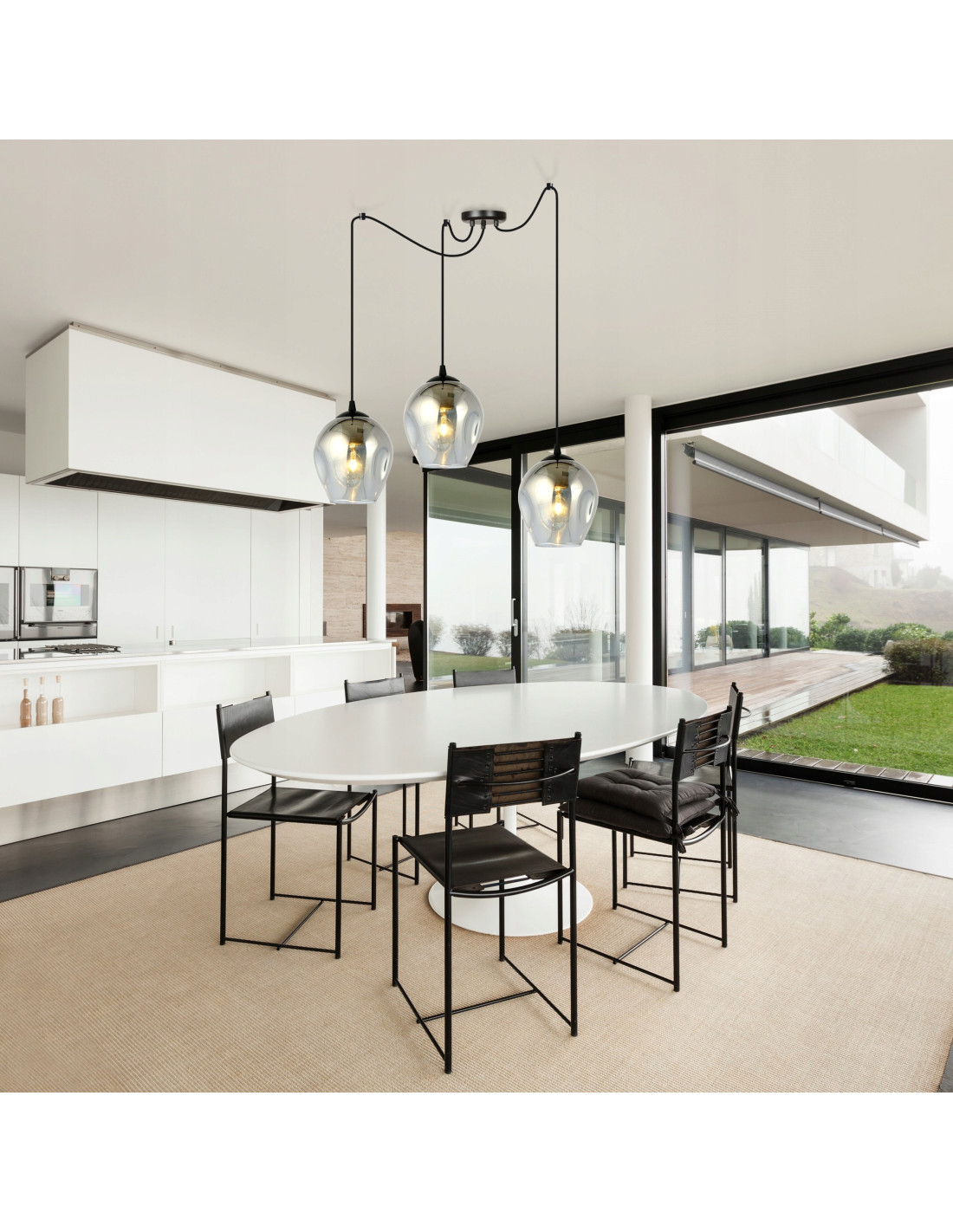 Oświetlenie do jadalni o rozłożystej konstrukcji LEVEL 3 BL transparentny to elegancka i nowoczesna lampa sufitowa, która doskonale wpasuje się w różnorodne aranżacje. Zastosowanie długich przewodów umożliwia indywidualne dostosowanie wysokości, co czyni ją idealnym rozwiązaniem do wysokich loftowych przestrzeni. Dzięki swoim unikalnym proporcjom, lampa nie tylko doświetla wnętrze, ale również staje się jego nieodłącznym elementem dekoracyjnym.