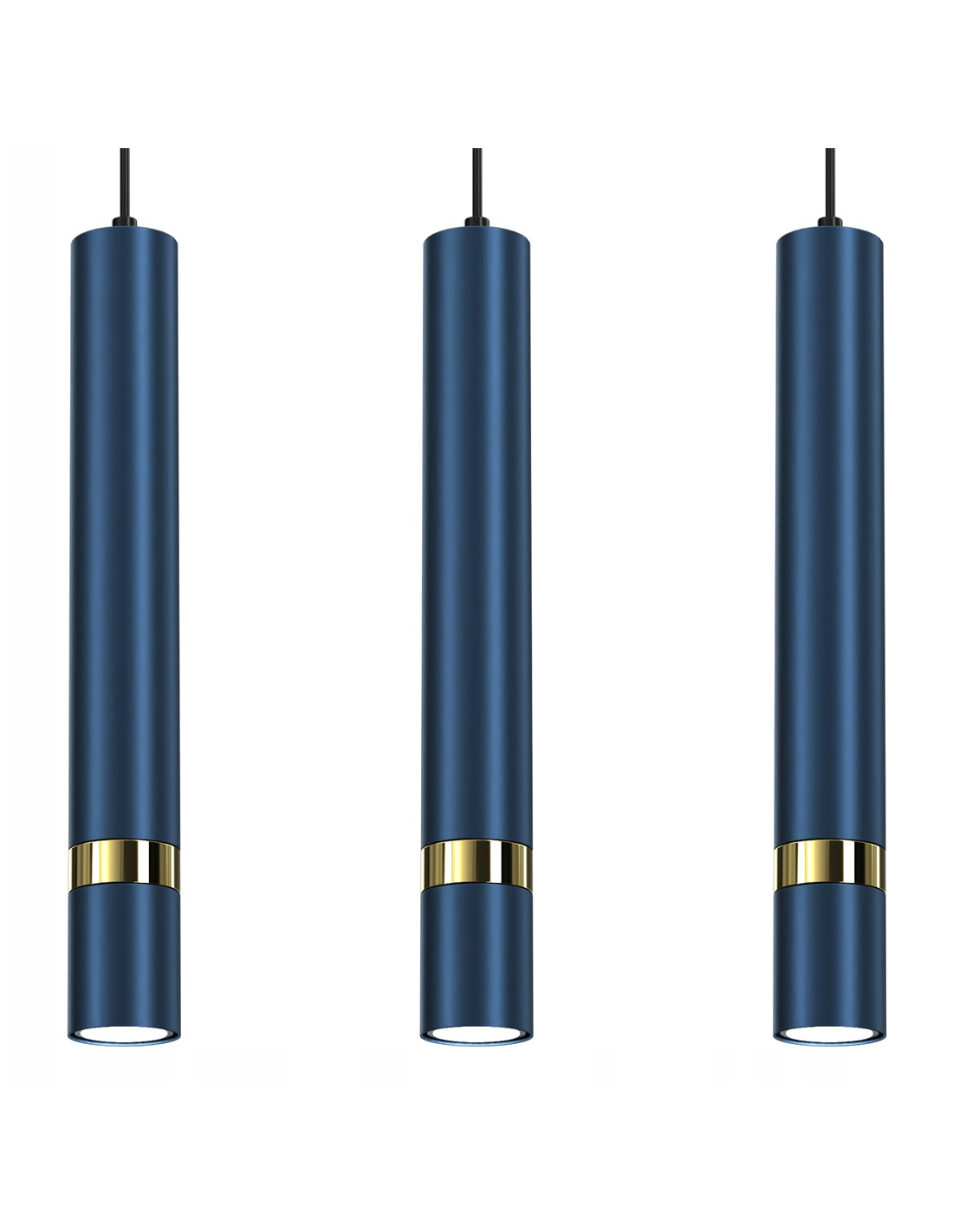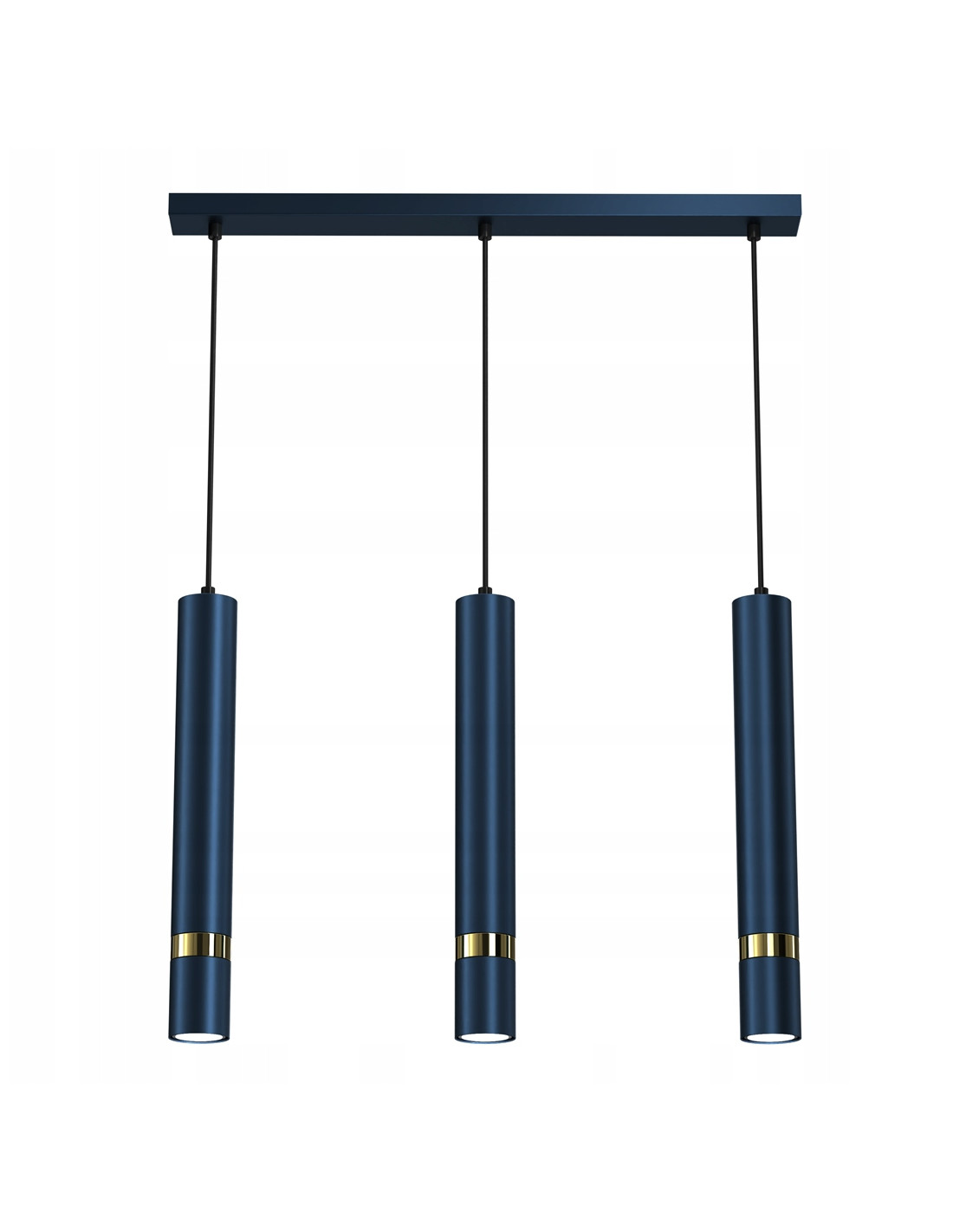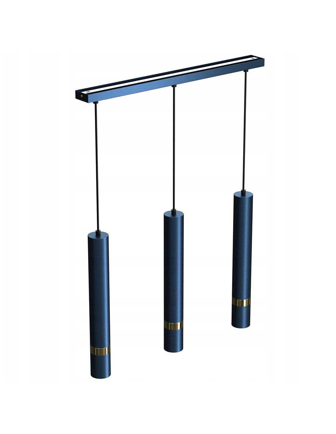 Każdy z kloszy lampy ma długość 42,5 cm, co czyni je nie tylko atrakcyjnym elementem dekoracyjnym, ale również efektywnym źródłem oświetlenia. Wykonane z najwyższej jakości metalu, lampy są nie tylko estetyczne, ale również niezwykle trwałe. Połączenie granatowego koloru z złotymi akcentami stanowi doskonały wybór do nowoczesnych wnętrz oraz loftowych przestrzeni.