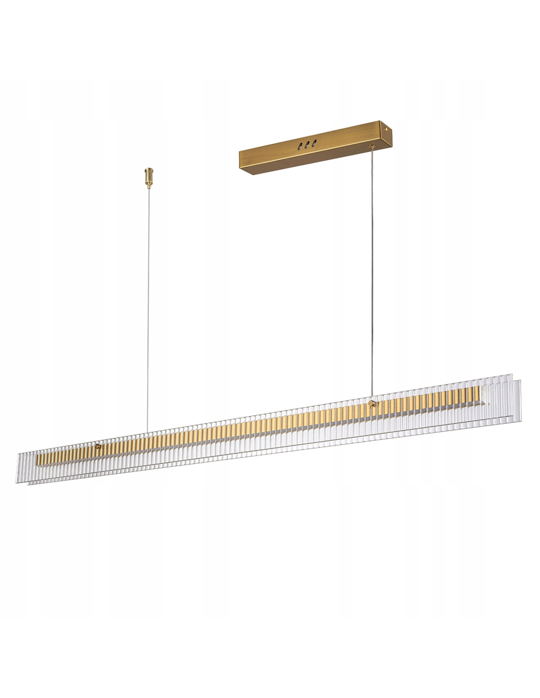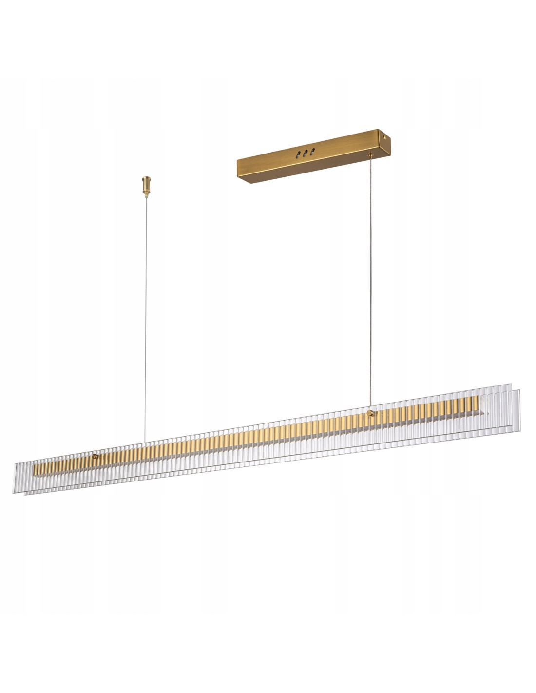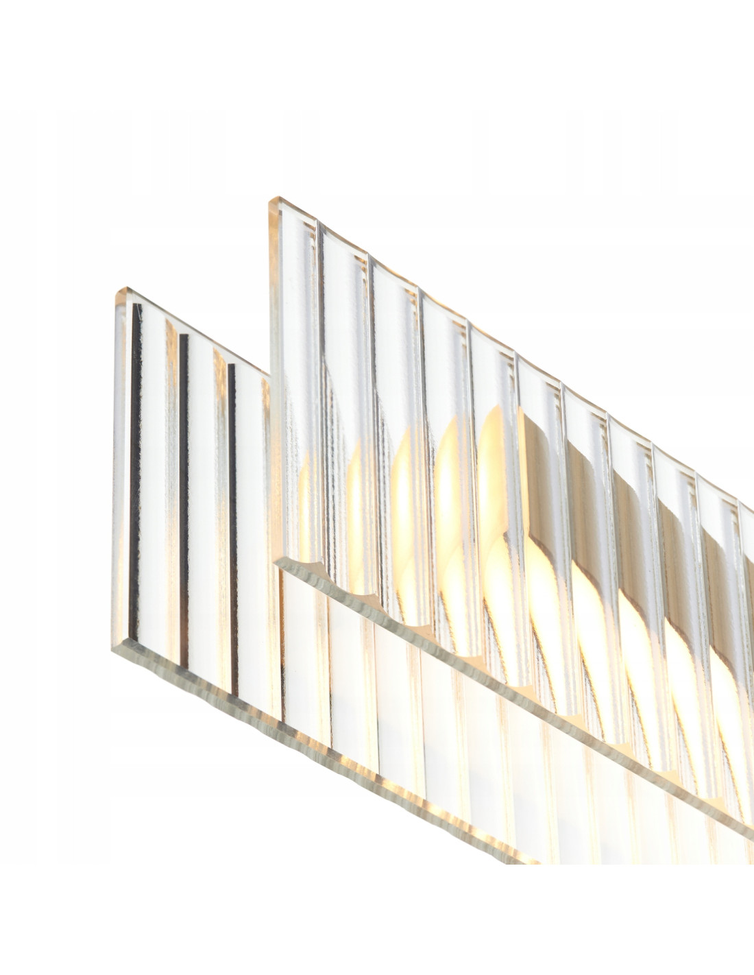 Lampa LONGIN to synonim nowoczesnego designu oraz wyrafinowanej elegancji, która doskonale wpisa się w każdą aranżację wnętrza. Charakteryzuje się wyjątkową złotą listwą, otoczoną taflą prążkowanego szkła, co nadaje jej niepowtarzalny i luksusowy wygląd. Zastosowanie wysokiej jakości materiałów gwarantuje zarówno estetykę, jak i trwałość, co sprawia, że lampa ta będzie służyć przez wiele lat.