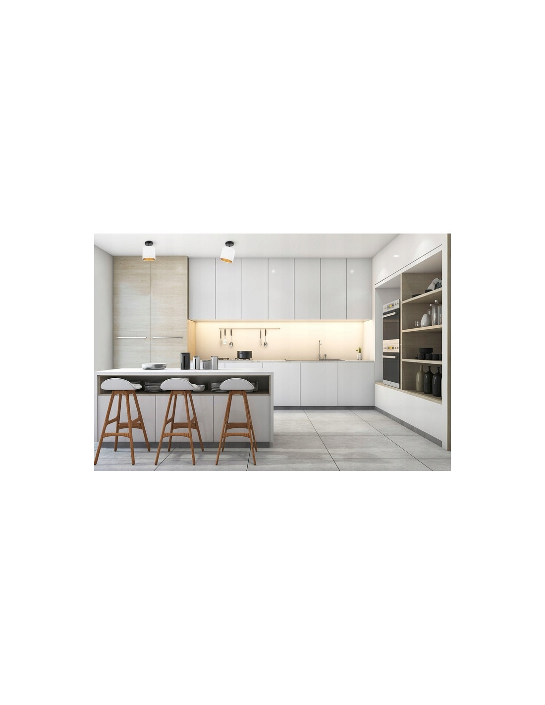 Wysoka jakość wykonania lampy z pewnością zadowoli nawet najbardziej wymagających użytkowników. Abażur w kolorze białym doskonale komponuje się z metalową konstrukcją, dostępną w wersji białej oraz czarnej. Dodatkowym atutem jest złote wnętrze, które nadaje lampie wyjątkowy blask i elegancję. Takie połączenie kolorów sprawia, że lampa z łatwością wpasuje się w różnorodne aranżacje wnętrz, od industrialnych po skandynawskie.