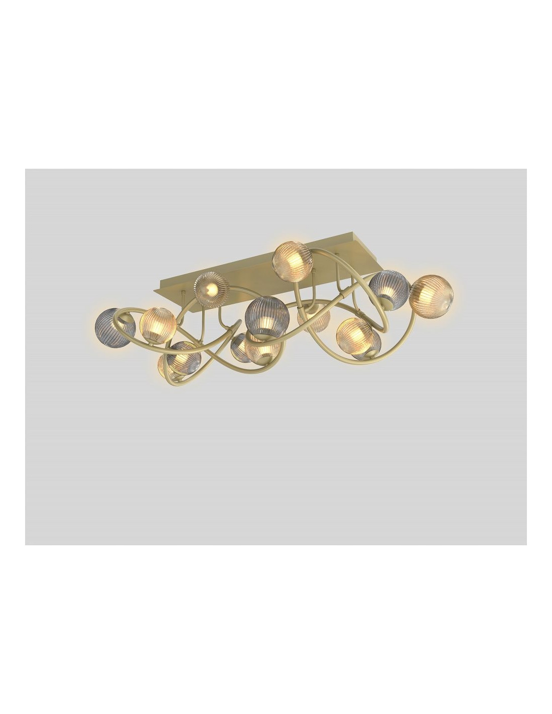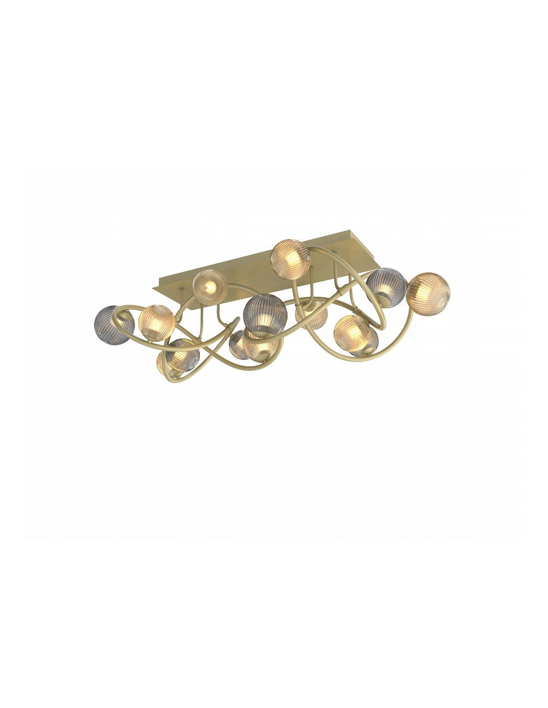 Elegancki odcień złoty z bursztynowymi oraz dymionymi kloszami sprawia, że lampa doskonale wpasowuje się w różnorodne aranżacje wnętrz, dzięki czemu staje się uniwersalnym dodatkiem zarówno do sypialni, jak i salonu, a także biura czy korytarza. Z jej pomocą stworzysz przytulną atmosferę sprzyjającą relaksowi i wypoczynkowi.