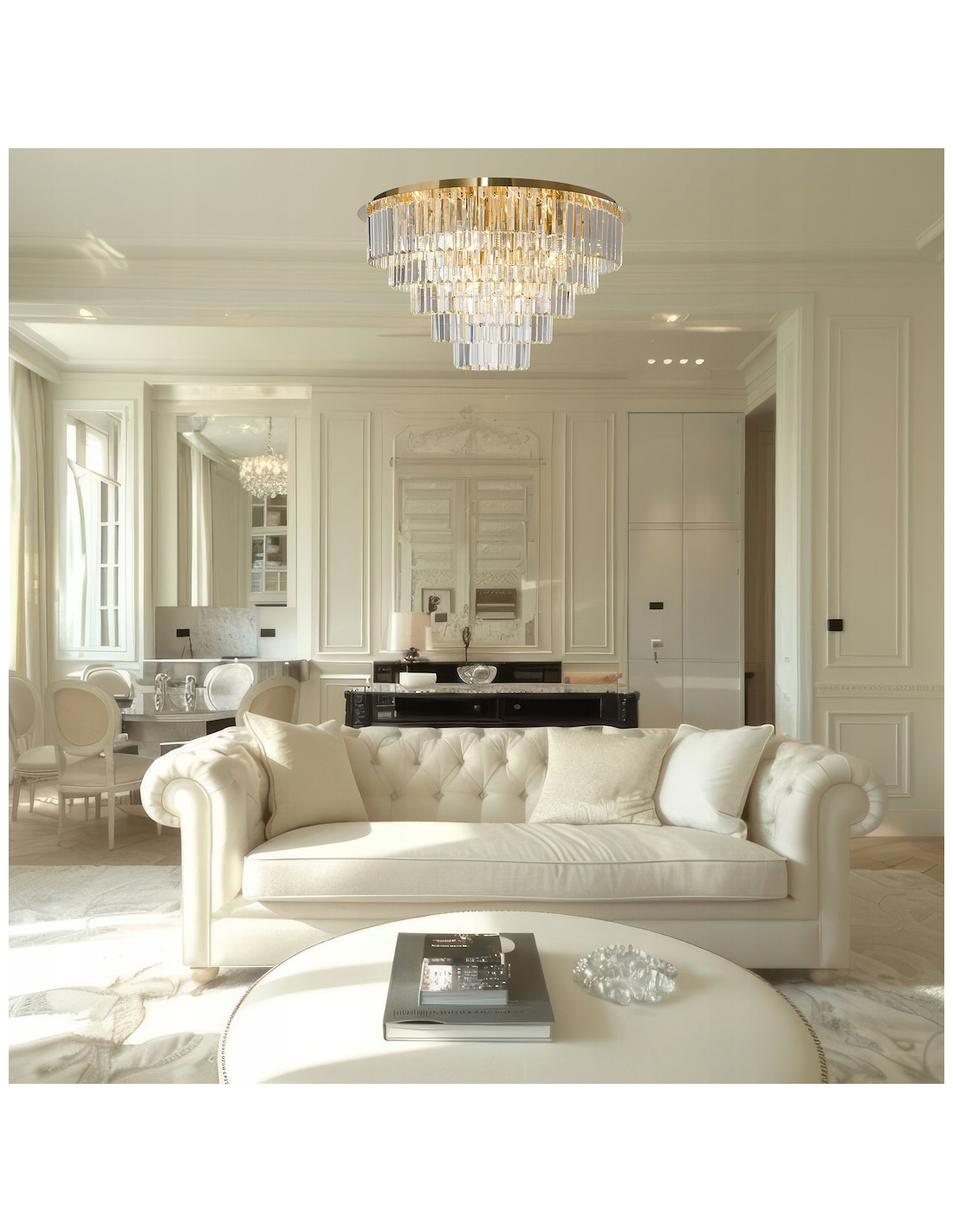 Przykładem zachwycającego designu lampy MILANO jest jej wielopoziomowa konstrukcja, w której kryształowe elementy nie tylko pięknie odbijają światło, ale także nadają wnętrzu głębi i blasku. Doskonała do zastosowań w salonach, jadalniach, eleganckich holach oraz przestrzeniach komercyjnych, takich jak hotele i restauracje, lampa ta doda prestiżu każdej aranżacji.