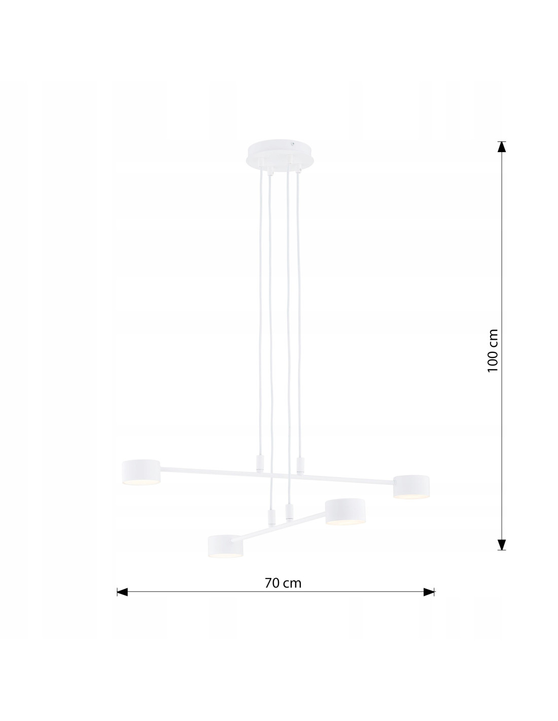 Wysokość lampy wynosi 100 cm, a szerokość 70 cm, co sprawia, że stanie się ona centralnym punktem każdego pomieszczenia. Dodatkowo, średnica podsufitki wynosi 14 cm, co pozwala na łatwy montaż w różnych warunkach. Lampa jest dostępna w eleganckim odcieniu białym, co pozwala na jej łatwe dopasowanie do istniejącej stylistyki wnętrza.