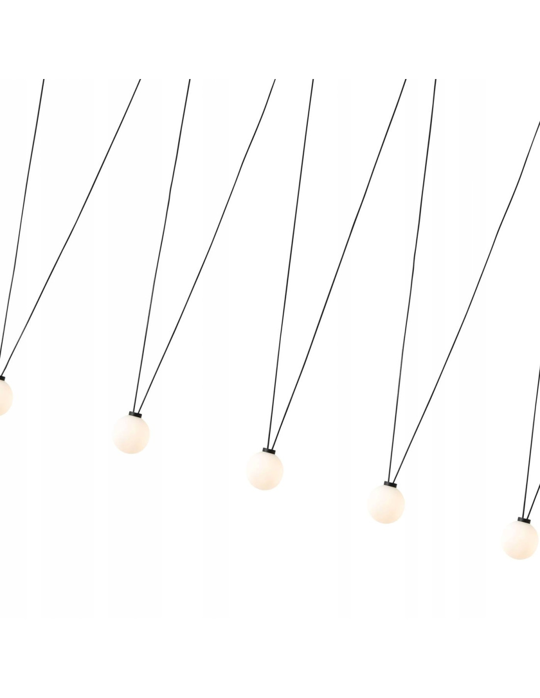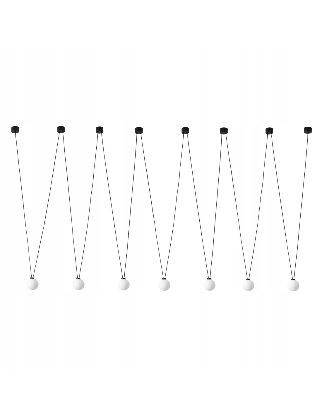 W lampie Movo VII zastosowano regulowany przewód, który można dopasować do dowolnej wysokości wnętrza, co czyni ją niezwykle funkcjonalną. Lampa zakończona jest siedmioma mlecznobiałymi kloszami, które emitują przyjemne, rozproszone światło, idealne do różnych pomieszczeń. Dodatkowo, klasyczne połączenie czerni i bieli sprawia, że lampa doskonale komponuje się w różnych aranżacjach – od nowoczesnych po bardziej klasyczne.