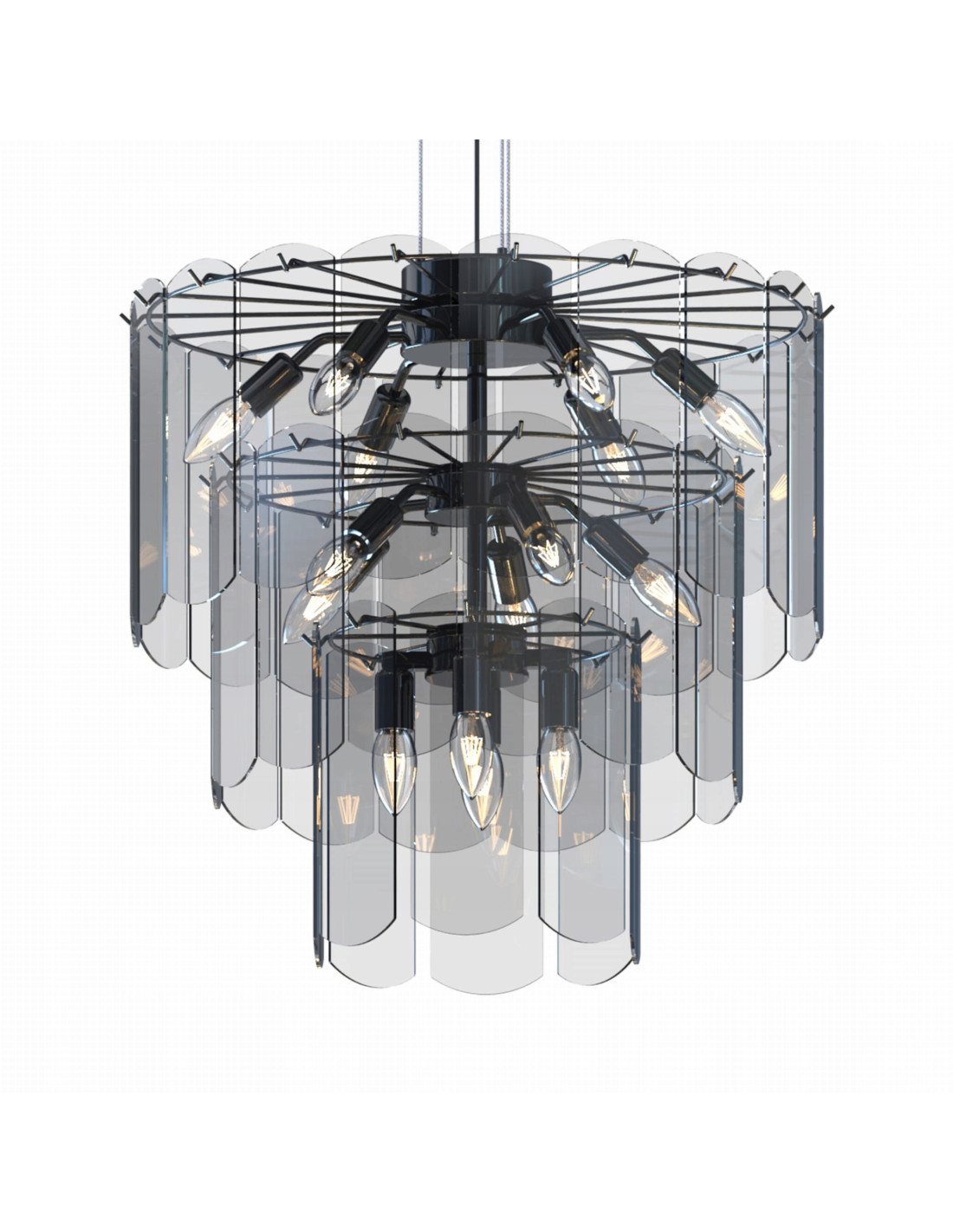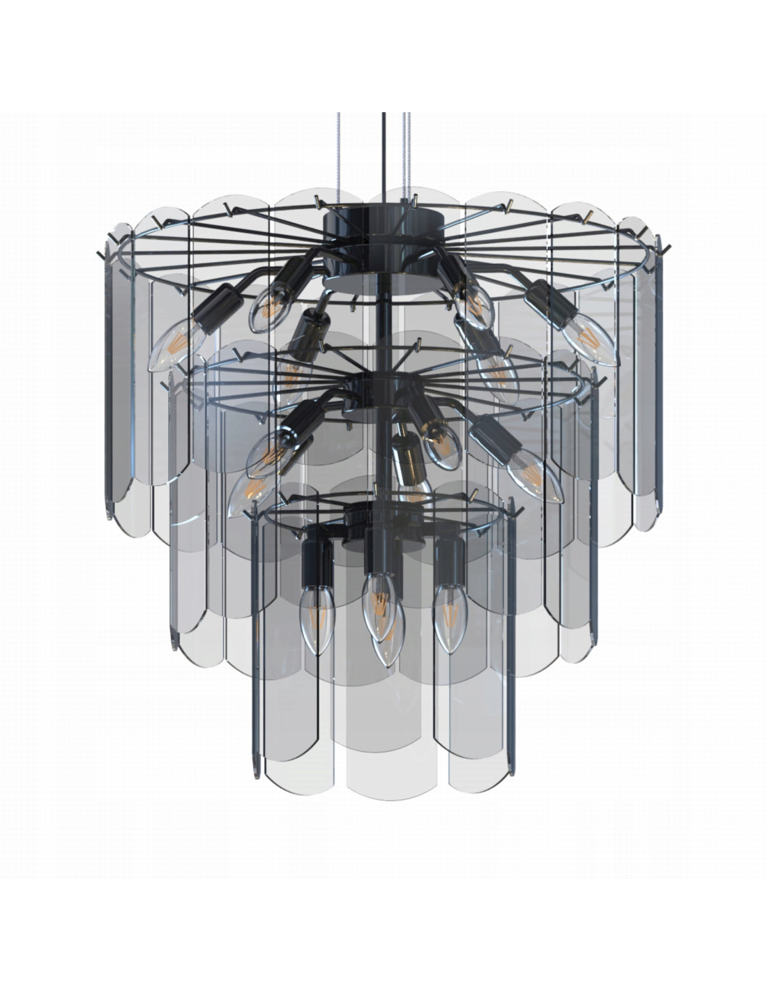 Wykonana z czarnego metalu, lampa NIRA zyskuje na atrakcyjności dzięki transparentnym szklanym elementom, które otaczają żarówki E14. Te elementy nie tylko wprowadzają subtelne rozproszenie światła, ale także nadają lampie charakterystyczny styl, który przyciąga wzrok i zachwyca gości.
