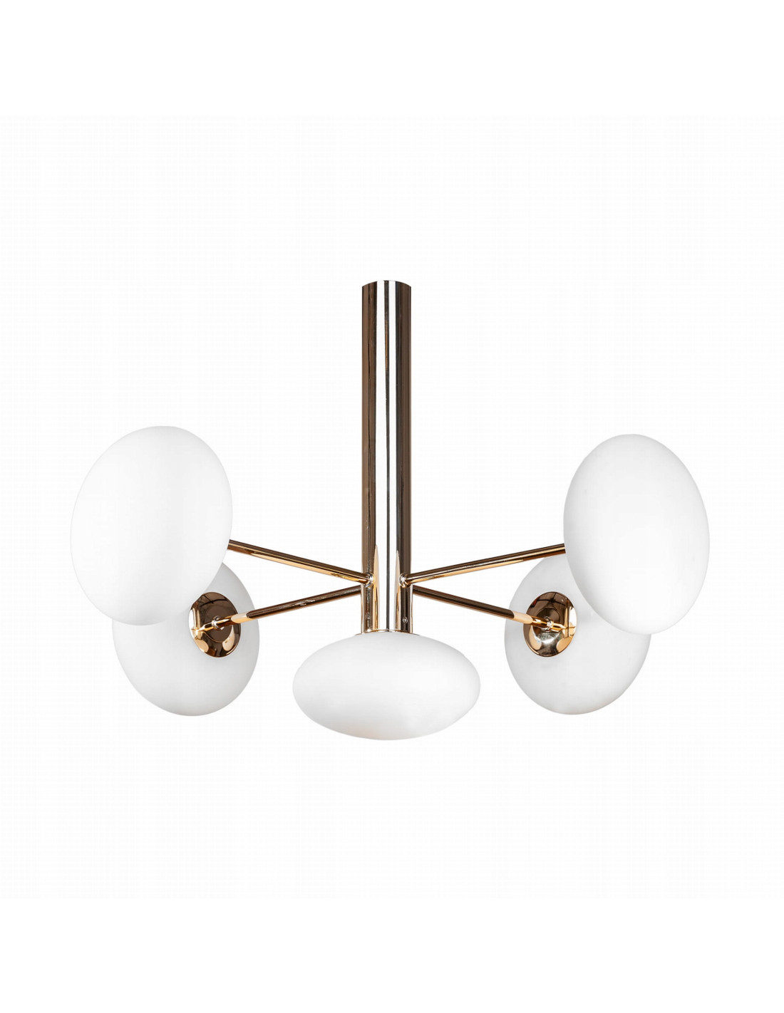 Lampa sufitowa OMI to wyjątkowy element dekoracyjny, który nada charakteru każdemu wnętrzu. Jej unikatowy wygląd oraz złoto-biała kolorystyka sprawiają, że doskonale wkomponuje się w różnorodne style aranżacyjne, od nowoczesnego po klasyczny. Dzięki zastosowaniu pięciu kulistych kloszy, lampa staje się centralnym punktem w każdym pomieszczeniu, przyciągając wzrok i dodając elegancji.